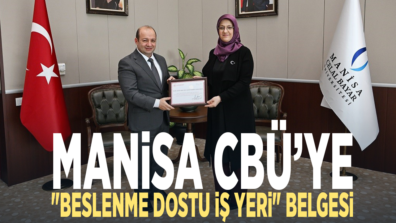 Manisa CBÜ Prof. Dr. İlhan Varank Yerleşkesi, Sağlık Bakanlığı tarafından yürütülen "Beslenme Dostu ve Fiziksel Aktiviteyi Destekleyen İş Yeri Programı" kapsamında Manisa İl Sağlık Müdürlüğü tarafından yapılan değerlendirme sonucunda kriterleri başarıyla karşılayarak belge almaya hak kazandı. Belge, Manisa İl Sağlık Müdürü Uzm. Dr. Mehmet Fatih Zeren ve beraberindeki heyet tarafından, Rektör Prof. Dr. Rana Kibar’a takdim edildi. Rektörlük makamında gerçekleştirilen törene Rektör Yardımcıları Prof. Dr. Ahmet Çetin, Prof. Dr. Kadir Ay ve Prof. Dr. Oktay Üçer ile Genel Sekreter Erhan Doğan da katıldı.