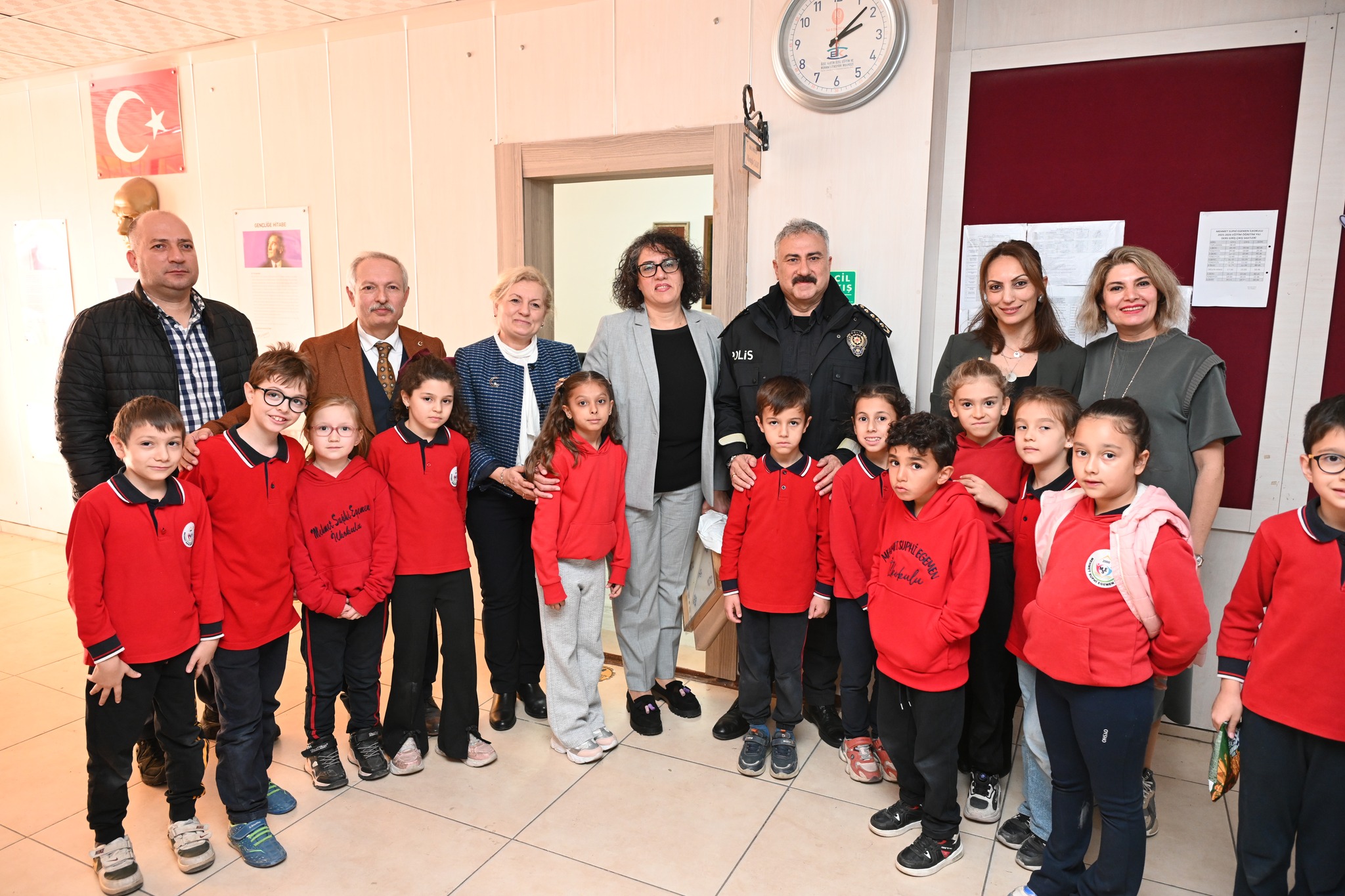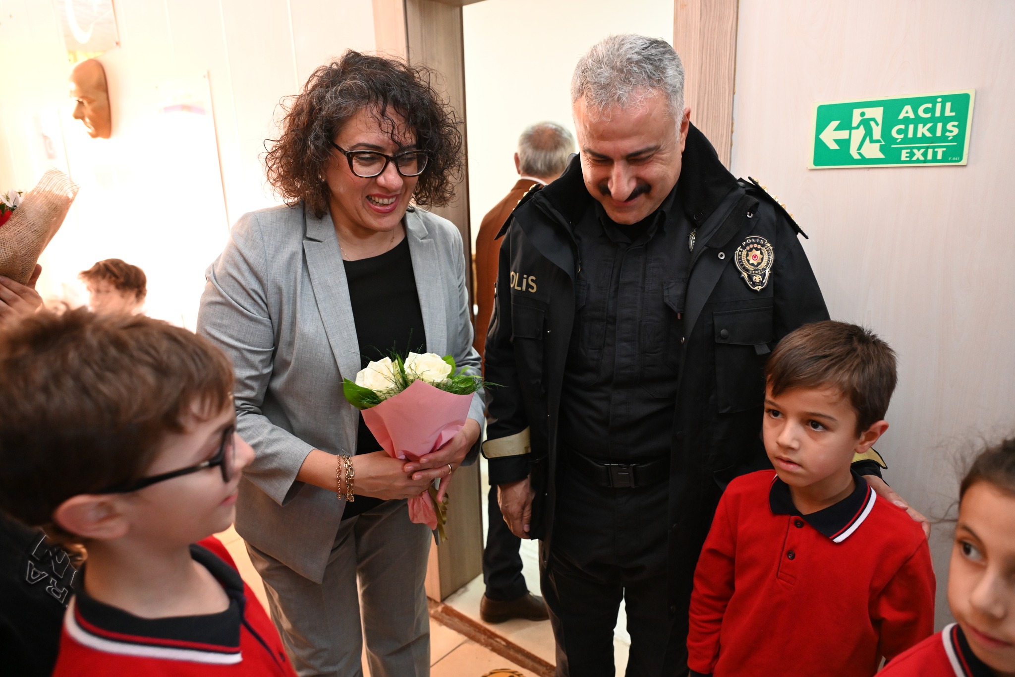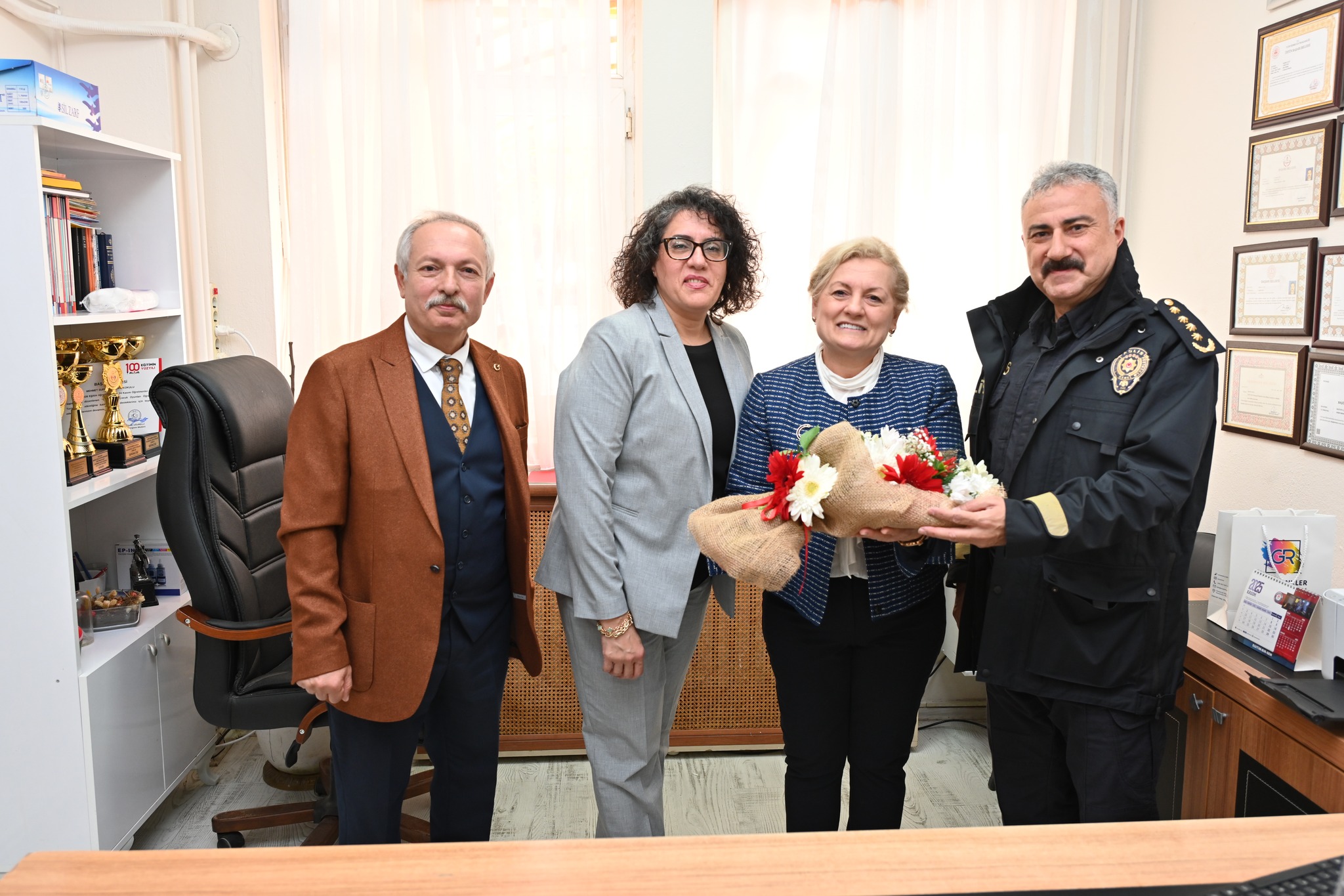 Manisa İl Emniyet Müdürü Fahri Aktaş ile eşi, Polis Eşleri Derneği Manisa Şubesi Başkanı Nuray Aktaş, 24 Kasım Öğretmenler Günü dolayısıyla Şehit Komiser Ali Osman Sarıçalı’nın öğretmen olan eşi Çimen Sarıçalı’yı görev yaptığı Mehmet Suphi Egemen İlkokulu’nda ziyaret etti.