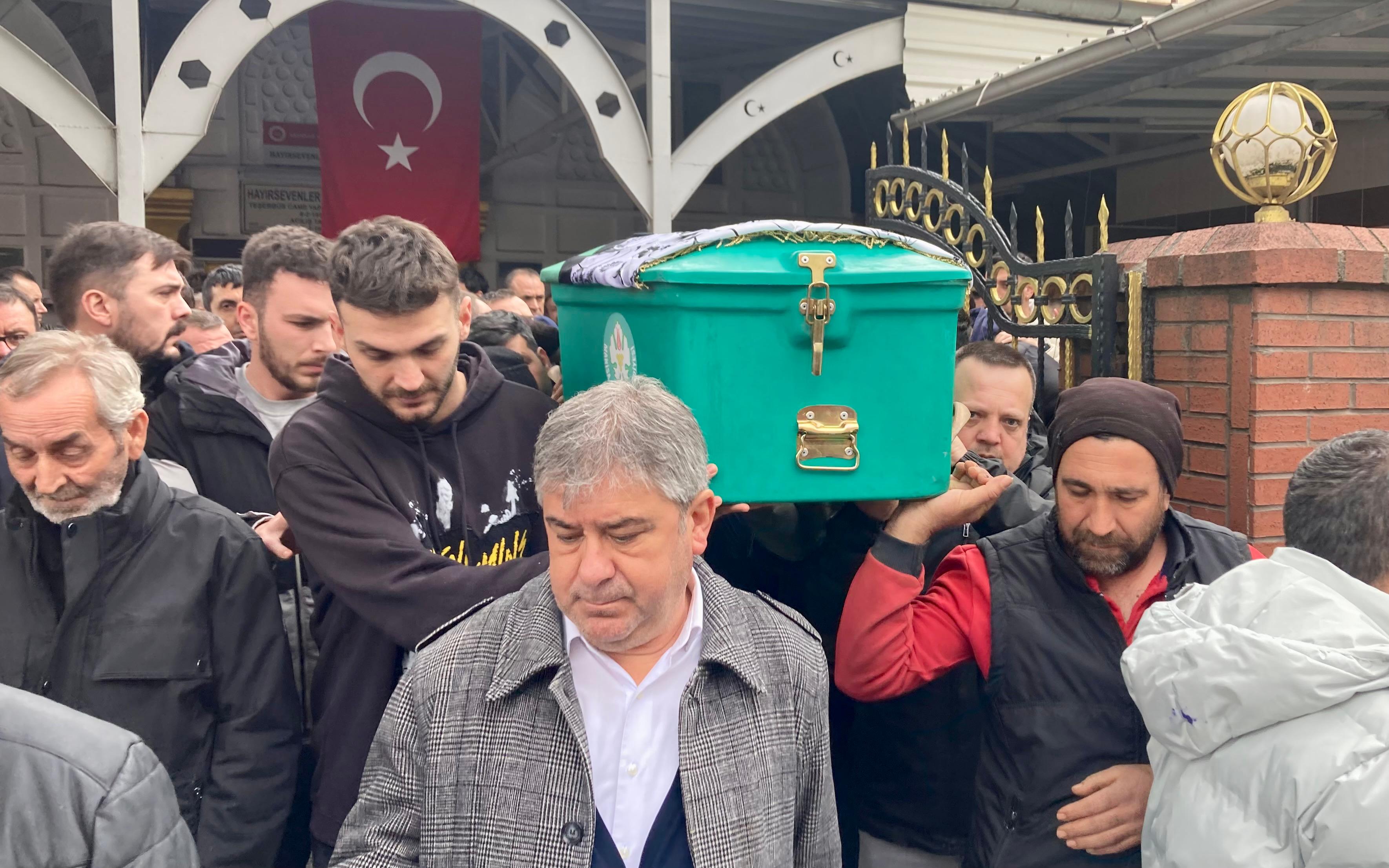 Ayşe Uz’un evlatları Recep, Hüsamettin, Şenay, Serkan ve Mustafa Uz, cami girişinde taziyeleri kabul etti.