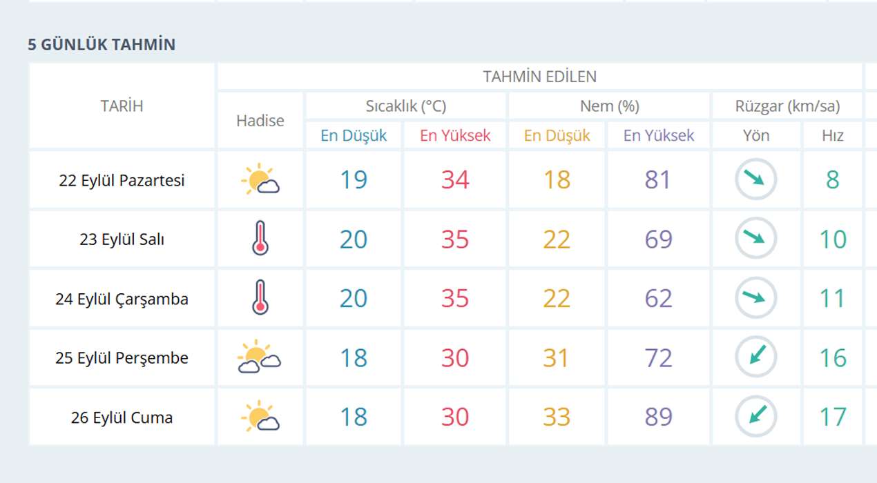 MANİSA İÇİN 5 GÜNLÜK HAVA TAHMİNİ