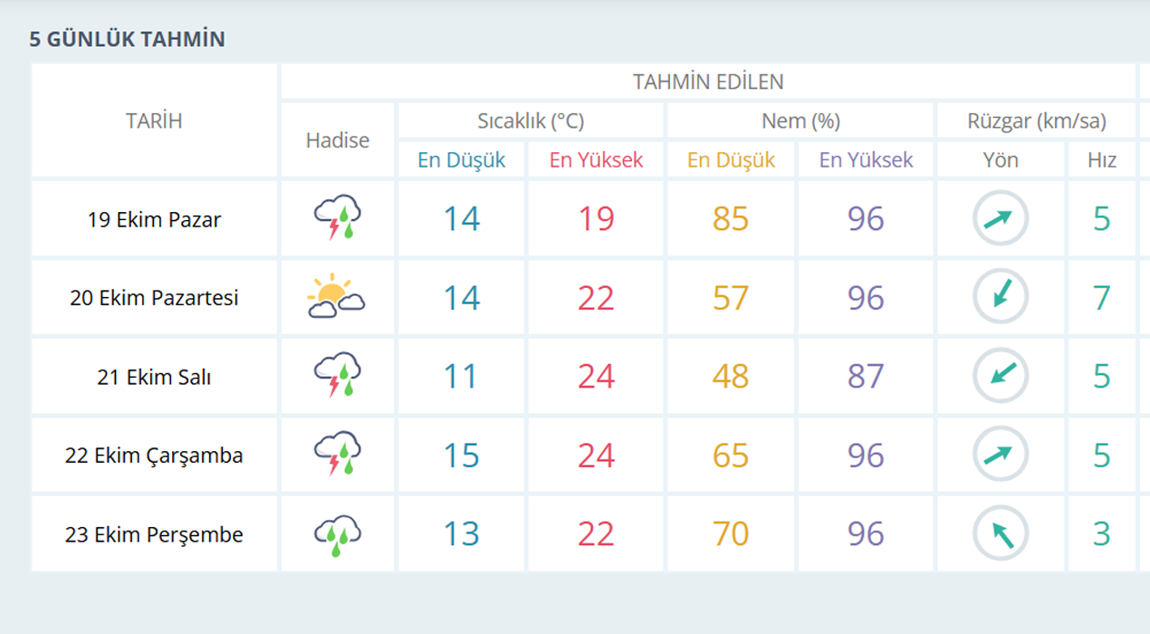 Ancak 21 Ekim Salı gününden itibaren kent genelinde yeniden sağanak yağışlı hava bekleniyor. Uzmanlar, vatandaşların ani sıcaklık değişimlerine karşı dikkatli olmaları konusunda uyarıda bulundu.