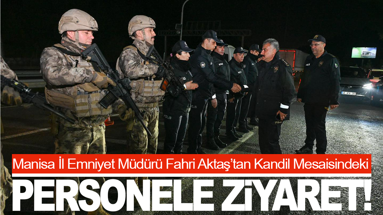 Manisa İl Emniyet Müdürlüğü tarafından yapılan açıklamaya göre, İl Emniyet Müdürü Fahri Aktaş, zaman mefhumu gözetmeksizin görev yapan personelin kandilini kutladı. Aktaş, ziyaretler kapsamında ekiplerle sohbet ederek görevlerinde başarılar diledi.