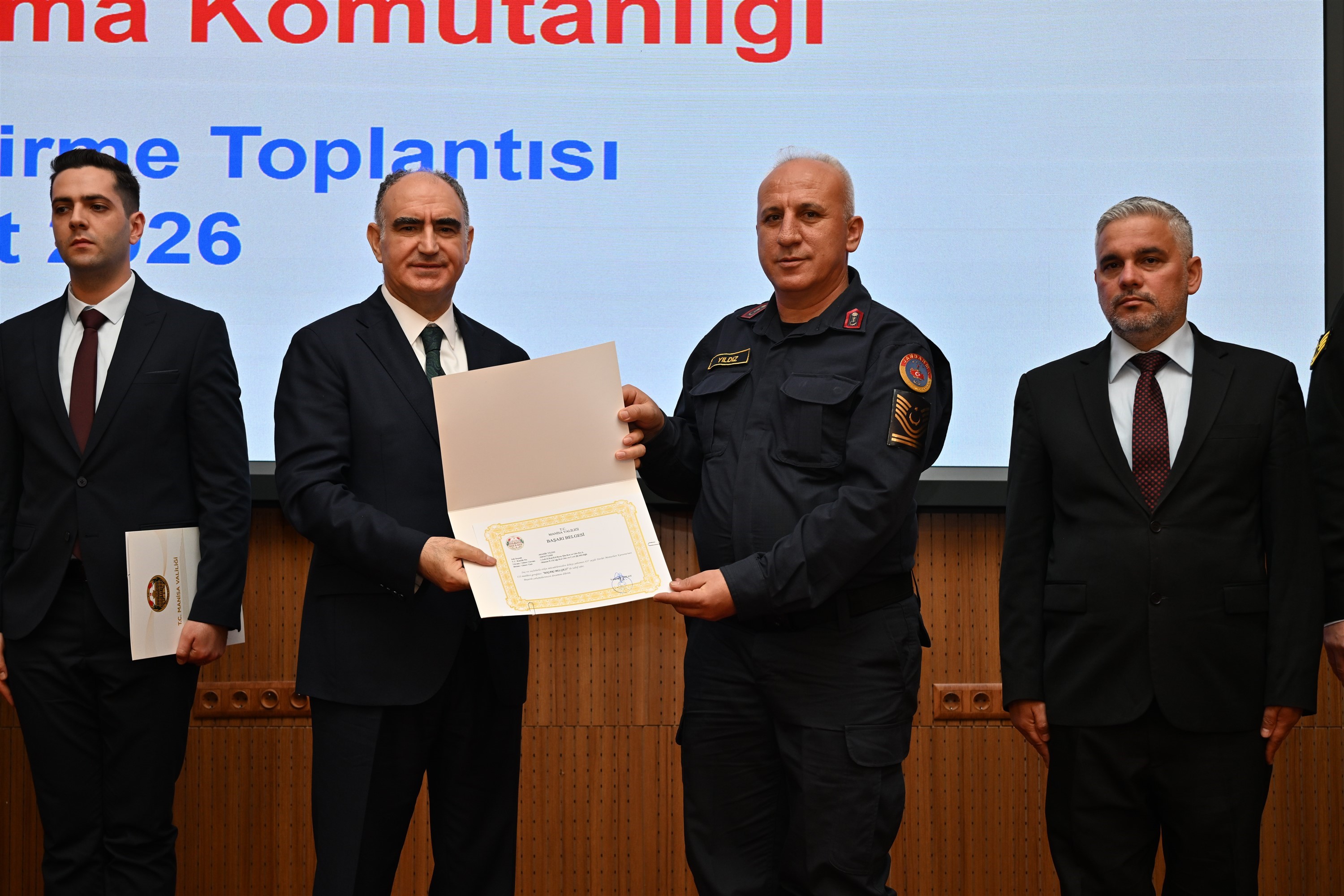 Toplantının ardından görevlerinde üstün başarı gösteren jandarma personeline Vali Vahdettin Özkan tarafından başarı belgeleri verildi. Vali Özkan, "Vatandaşlarımızın can ve mal güvenliğini teminat altına alan Jandarma Teşkilatımız, büyük bir fedakârlık ve sorumluluk bilinciyle görev yapmaktadır. Kamu düzeninin korunması ve vatandaşlarımızın huzuru için kararlılıkla çalışan Jandarma Teşkilatımıza teşekkür ediyor, tüm personelimize görevlerinde başarılar diliyorum." dedi.