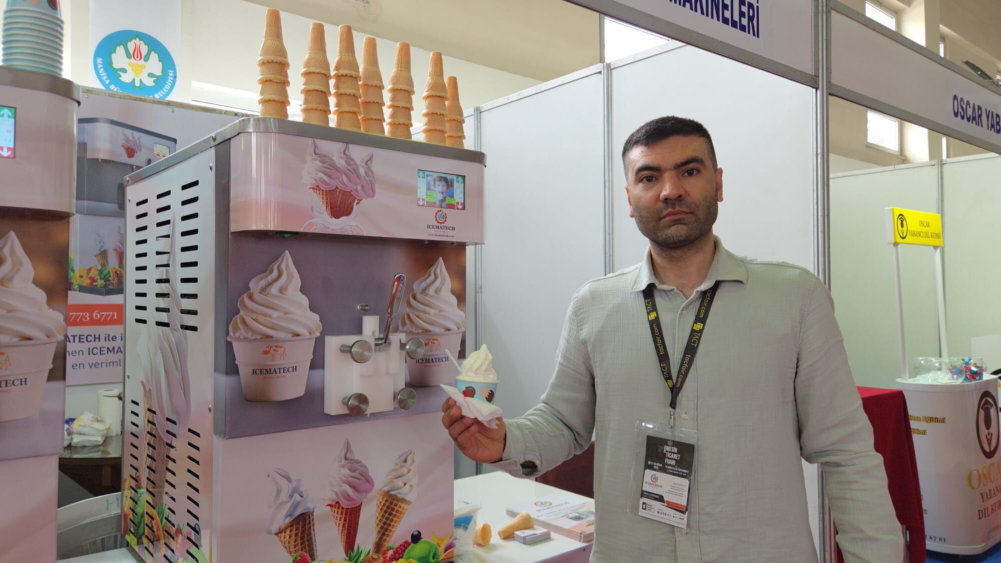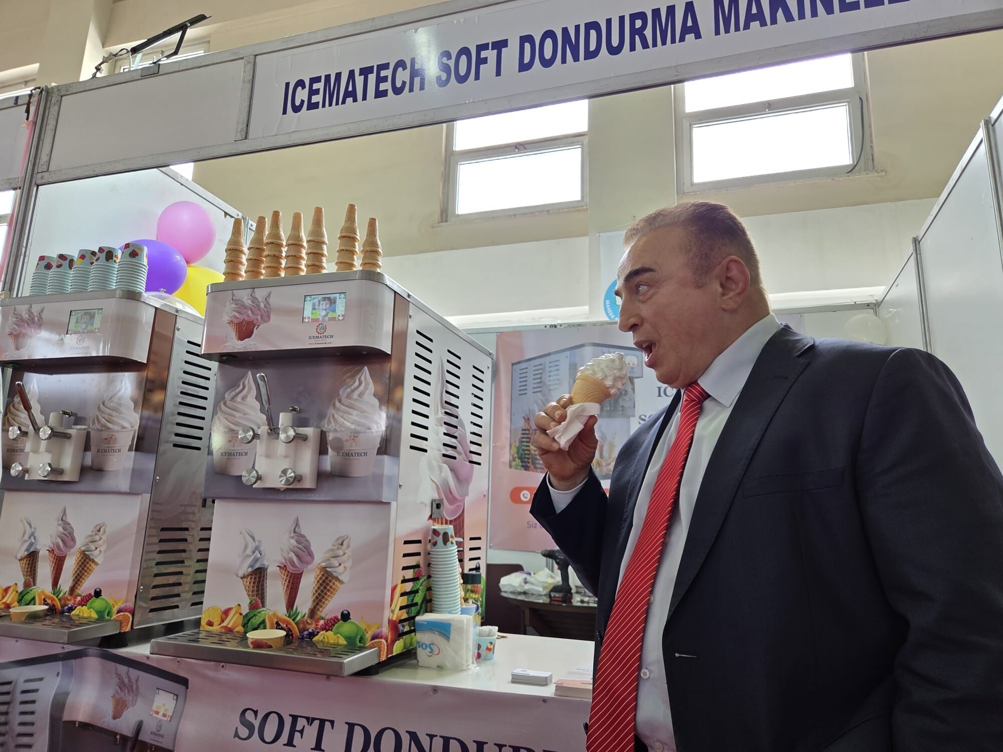 Fuarın bu yılki en dikkat çeken konuğu ise ünlü oyuncu Süleyman Yağcı oldu. Stantları tek tek gezen ve esnafla sohbet eden Yağcı’nın duraklarından biri de ICEMATECH Soft Dondurma Makineleri’nin tanıtıldığı alan oldu.