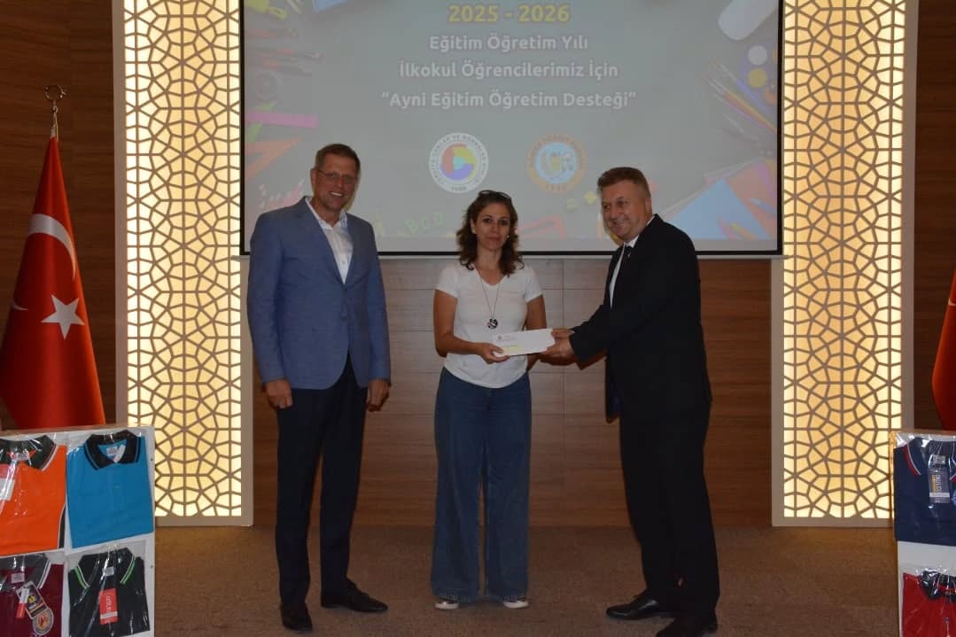 2025 – 2026 eğitim öğretim yılı kapsamında Manisa Ticaret Borsası tarafından ilkokul öğrencilerine yönelik “Ayni Eğitim Öğretim Desteği” gerçekleştirildi. Program çerçevesinde eğitim öğretim faaliyetlerinde kullanılmak üzere 450 adet çek ihtiyaç sahibi öğrenciye ulaştırılmak üzere okul müdürlerine teslim edildi.