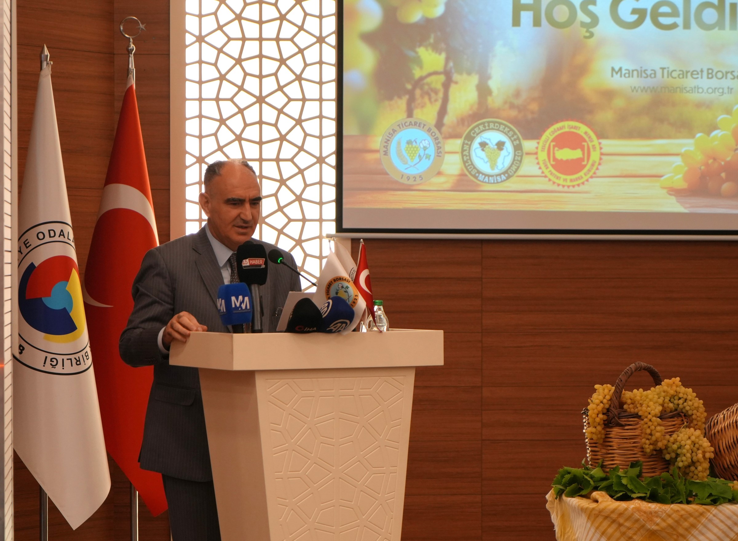 Üzümde dünyada alan olarak 5. sırada olduklarını kaydeden eski Tarım ve Orman Bakanı Bekir Pakdemirli de "Rekolte olarak 7. sıradayız ama ihracatta dünyada 1. sıradayız. Yani bu elbette hem çiftçimizin, hem de tüccarımızın hem de borsamızın katkısıyla. Bu borsa niye var? Çiftçimizin alın teri yere düşmeden bir şekilde karşılığını alabilsin diye. Karşılığını alabilsin ki zarar etmesin, bu işten kar etsin ve sürekli sürdürülebilir olsun diye. Şimdi 500 milyon dolarları geçmişiz. Yaş üzüm ile beraber 650 milyon dolarlara varan bir ihracat potansiyeline geldik. Türkiye'nin ihracatında tarım ürünleri normalde sanayi ürünlerine göre kilo bazında daha az yer tutar. Ama şükür ki artık milyar dolarlarla yarışan ürünlerimiz var Türkiye'de" diye konuştu.