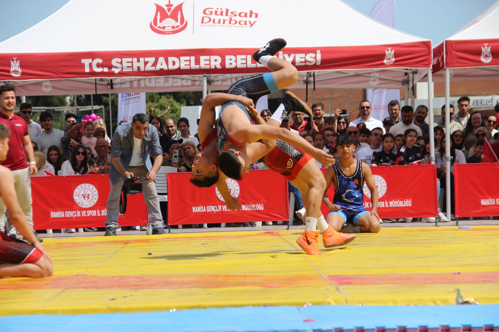 Manisa’nın Şehzadeler ilçesindeki Cumhuriyet Meydanında bulunan Atatürk ve Milli Egemenlik Anıtına çelenk sunulmasıyla başlayan kutlama programı Cumhuriyet Meydanında büyük bir coşkuyla kutlandı.