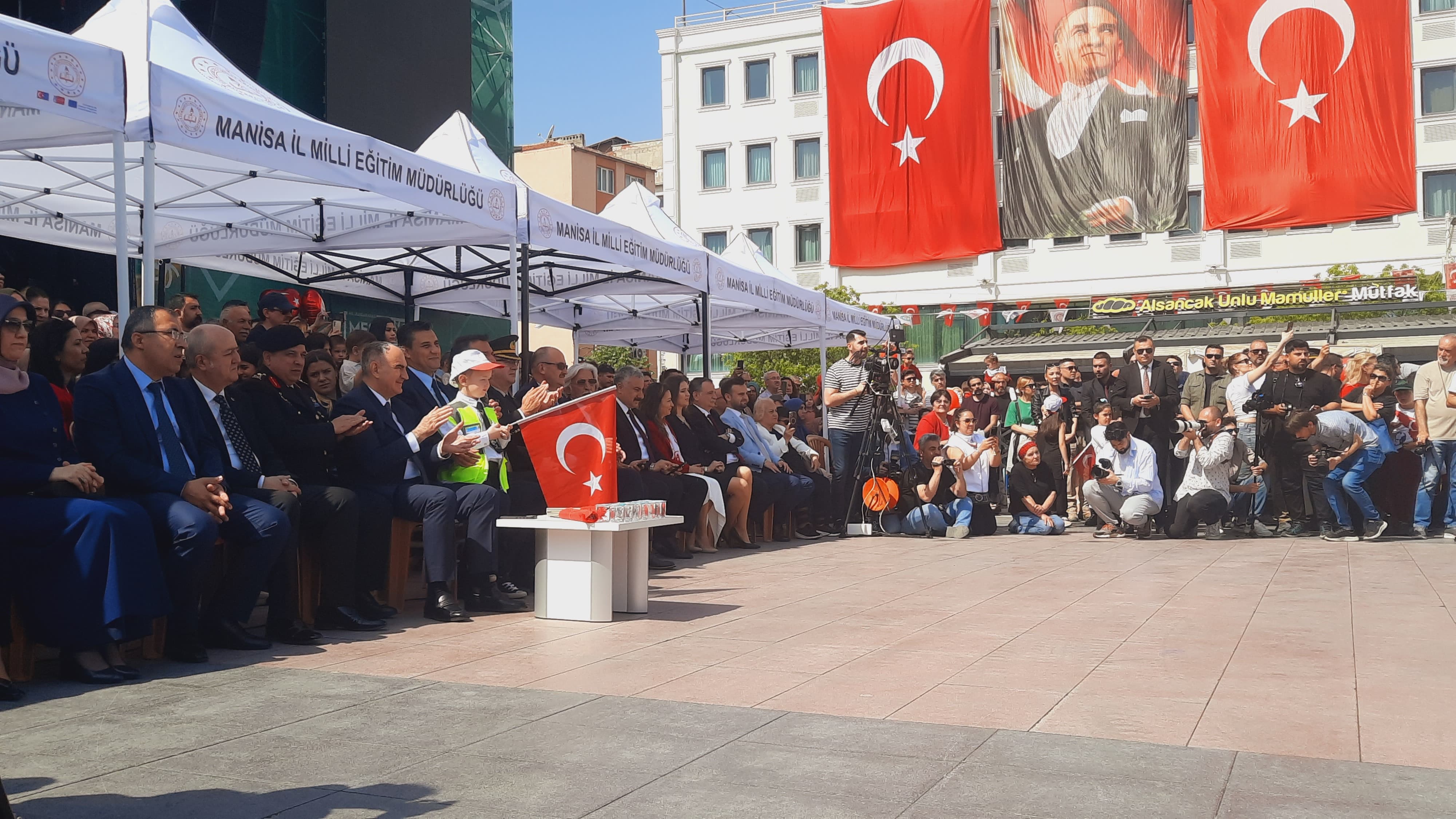 TBMM'nin açılışının 105. yılı ve 23 Nisan Ulusal Egemenlik ve Çocuk Bayramı Manisa'nın merkez ilçelerinden Şehzadeler'deki Cumhuriyet Meydanında düzenlenen programla kutlandı. Saygı duruşunda bulunulması ve İstiklal Marşının okunmasıyla başlayan programda Şehit Ömer Halisdemir Ortaokulu öğrencileri okudukları şiirlerle vatandaşların bayram coşkusunu ikiye katladı. Günün anlam ve önemini belirten konuşmayı yapan Manisa İl Milli Eğitim Müdürü Mehmet Uğurelli, "105 yıl evvel, öldü sanılan bir millet dirildi. "Âti karanlık gibi görünse de azmi bırakmayanlar, artık söze vakit verilmemeli şiarıyla, sadece silahlarını değil iradelerini de kuşandı; yılmadı, korkmadı. Azimle yürüdü ve kazandı. Bir meclis kurdu ki o meclis, yalnızca karar değil, bir millete kader yazdı. Yurdun dört bir yanından gelen milletin vekilleri, top seslerinin gölgesinde, bir avuç imanla Büyük Millet Meclisini kurdu ve Ankara’dan bir ses 'Egemenlik kayıtsız şartsız milletindir.' dedi tüm dünyaya. İşte o meclis, 'Gazi' oldu tarihin huzurunda. Hem de iki defa. İlki Kurtuluş Mücadelesinde, İstiklal Savaşında, alnı ak bir zaferle ve ikincisi 15 Temmuz gecesi, bombalar altında dimdik ayakta. Bu ağır bedellerin üzerimize yüklediği sorumluluğun farkında olarak bizler, kutlu geleceği Maarif Modelimiz ile inşa ediyoruz. Ezberi değil, düşünceyi uyandırmaya çalışıyoruz. Kuralcı olmaktan öte kıvılcım ateşleyen bir anlayışla ilerliyoruz. Sorudan değil, meraktan doğan cevabı arıyoruz. Çünkü biz biliyoruz; bu milletin şafağı, sınıf sıralarında yeniden parlayacak ve Türkiye’nin yüzyılı öğretmenlerin kalemiyle yazılacak. Bu inançla, Gazi Mustafa Kemal Atatürk başta olmak üzere, istiklâl mücadelesinin tüm kahramanlarını rahmetle yâd ediyor, Çocuklarımızın neşesini, öğretmenlerimizin emeğini, milletimizin kararlılığını saygıyla selamlıyorum. Bayramınız kutlu olsun." dedi.