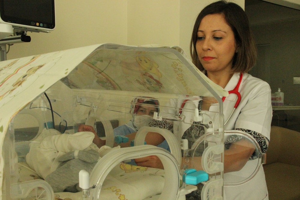 Manisa Şehir Hastanesinde doğumu gerçekleşen ilk prematüre bebekle ilgili bilgi veren Manisa Şehir Hastanesi Yenidoğan Neonatoloji Hekimi Uzm. Dr. Sinem Akbay, “Hastamız gebeliğin 29. Haftasında 1140 gram olarak dünyaya geldi. Anne karnındaki transport önemli olduğu için 112 tarafından ilk önce anne sevki oldu. Daha sonrasında doğum hastanemizde gerçekleşti. 2 gün solunum cihazına bağlı olarak izledik. Doğum sonrasında 42. günde sağlıklı bir şekilde anne ve babaya teslim edeceğiz bebeğimizi. Bundan sonra da prematürenin getirmiş olduğu komplikasyonları açısından yakın takibe alacağız. Gelişen teknolojiyle birlikte çok düşük doğum ağırlıklı bebekler artık yaşama tutunmakta. Manisa Şehir Hastanesi 3. Basamak yani İleri Yenidoğan Yoğun Bakım Servisinin açılmasıyla da artık hastanemizde yer olduğu sürece bu tür hastaları takip etmekteyiz. Bu şekilde transport esnasında oluşabilecek komplikasyonları hem önlemiş oluyoruz hem de aile konforunu sağlamaktayız. Birinci hedefimiz bu. Bebeğimiz Manisa Şehir Hastanesine kabul edilen ilk prematüre bebeğimiz ve sağlıklı bir şekilde ailemize teslim edilecek.” dedi.