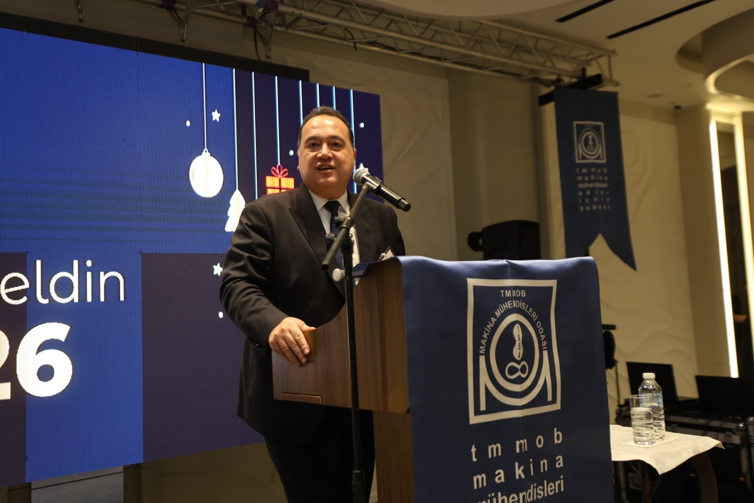 Manisa Makina Mühendisleri Odası Yürütme Kurulu Başkanı Nilgül Gökarslan Artan, “Odamız üyelerini, kamu ve yerel yönetim yöneticilerini, sivil toplum kuruluşlarını, Manisa’mızı yönetenleri bir araya getiren 29 yıldır devam eden yeni yıl kokteylimizi onurlandırdığınız için teşekkür ediyor, hoş geldiniz diyorum. Geride bıraktığımız yılda, dünya ölçeğinde ne yazık ki savaşlar hâlâ devam etmekte, milyonlarca insan yerinden edilmekte; iklim krizi, enerji ve gıda güvenliği sorunları artık ertelenemez bir noktaya ulaşmaktadır. Tüm bu gelişmeler, teknik bilginin ve mühendisliğin yalnızca ekonomik bir faaliyet değil, aynı zamanda insanlık ve yaşam sorumluluğu taşıdığını açıkça ortaya koymaktadır. Ülkemize baktığımızda ise; yüksek enflasyon, artan yaşam maliyetleri, işsizlik ve güvencesiz çalışma koşulları, mühendisler başta olmak üzere tüm emekçi kesimleri derinden etkilemektedir. Teknik bilginin karar alma süreçlerinden dışlandığı, liyakatin geri plana itildiği bir ortamda; yaşadığımız iş kazaları, çevre felaketleri ve plansız kentleşme uygulamaları ne yazık ki kaçınılmaz hale gelmektedir” dedi.