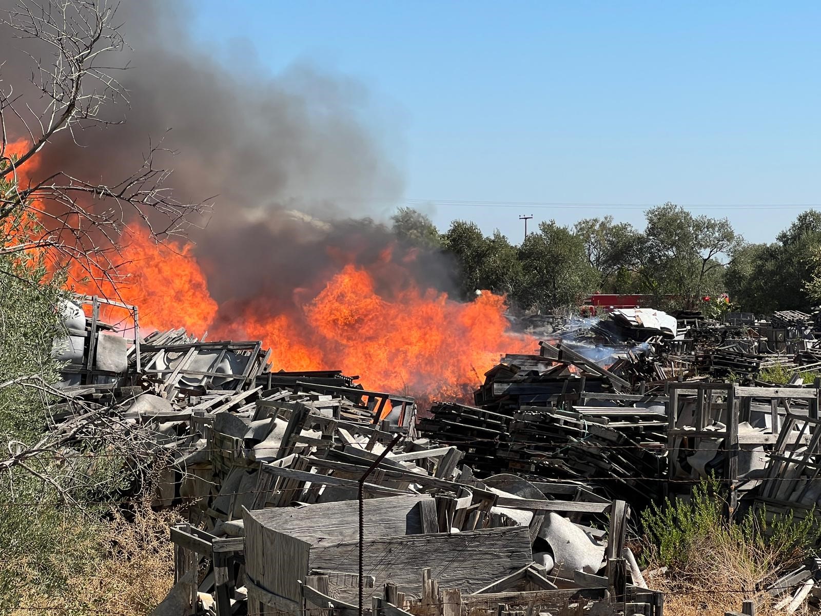 Yangın Manisa'nın Yunusemre ilçesi eski Muradiye Mahallesi yolunda faaliyet gösteren ahşap palet fabrikasında çıktı.