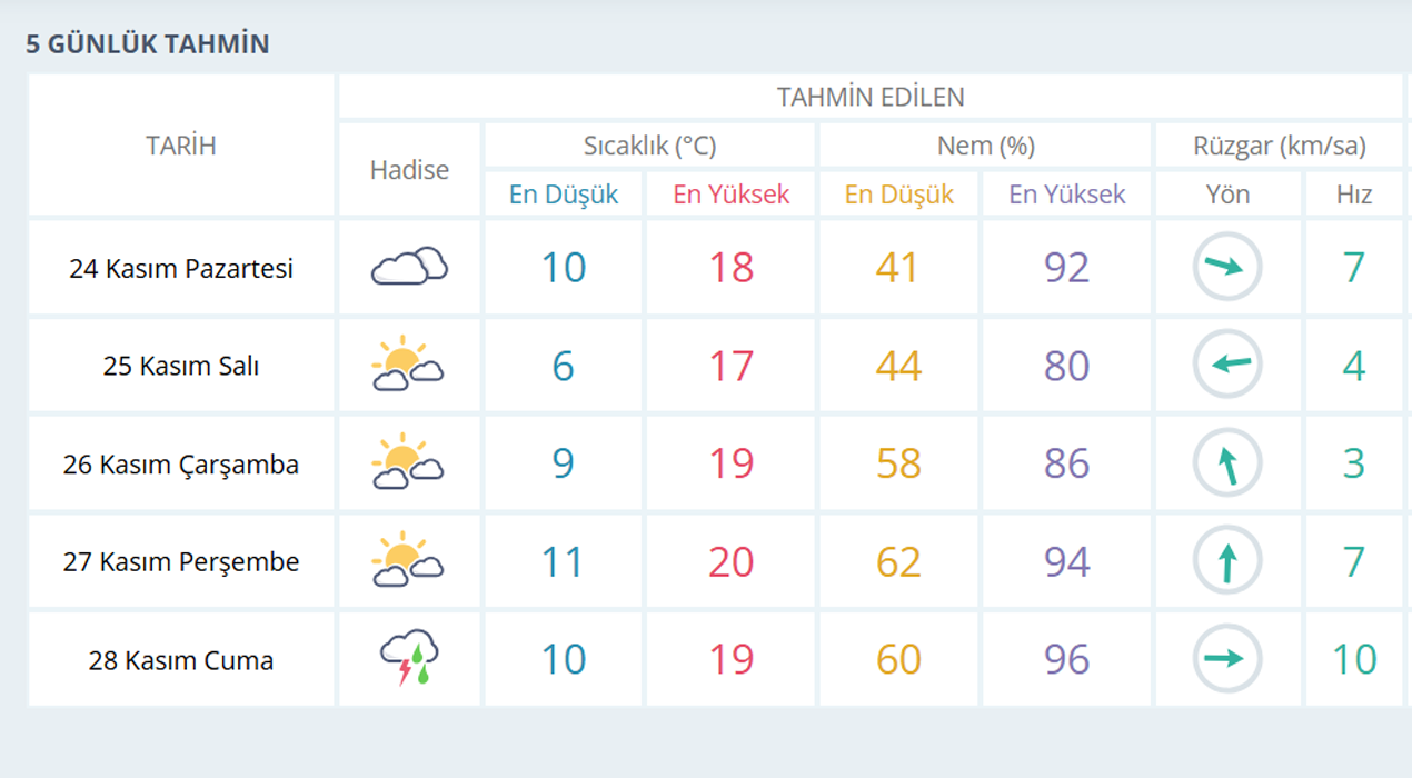 MANİSA İÇİN 5 GÜNLÜK HAVA TAHMİNİ