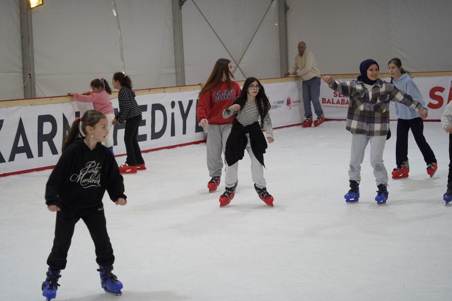 Semih Hoca öğrencileri unutmadı, ara tatilde onlara karne hediyesi olarak buz patenini öğrenme olanağı sağladı.