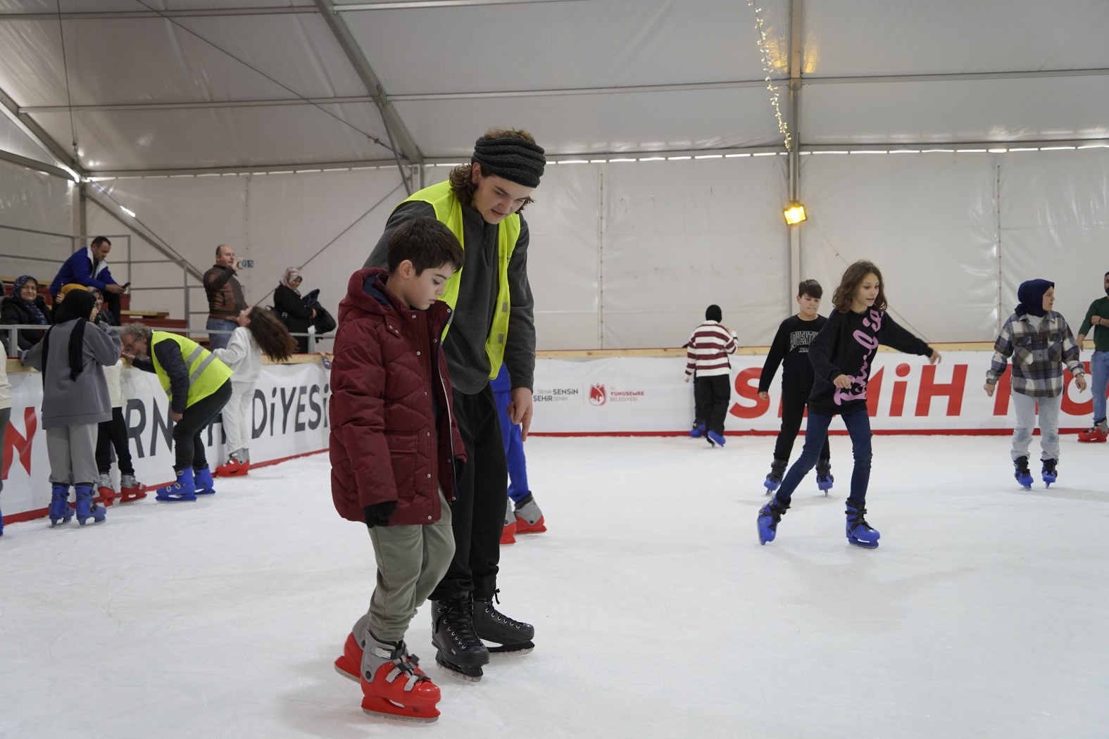 Onlara, Manisa'da ilk defa kurulan pistte buz pateni yaparak eğlenme ve stres atma olanağı sağladık. Çocuklarımız sporun çok merak ettikleri bir branşıyla tanışırken, yüzlerindeki mutluluk çok değerliydi. Ekipmanlar sağlanırken, buz pateni yapmanın incelikleri de öğretildi. Mutlu çocuk mutlu aile demektir. Mutlu aile de mutlu bir kent demektir" dedi.