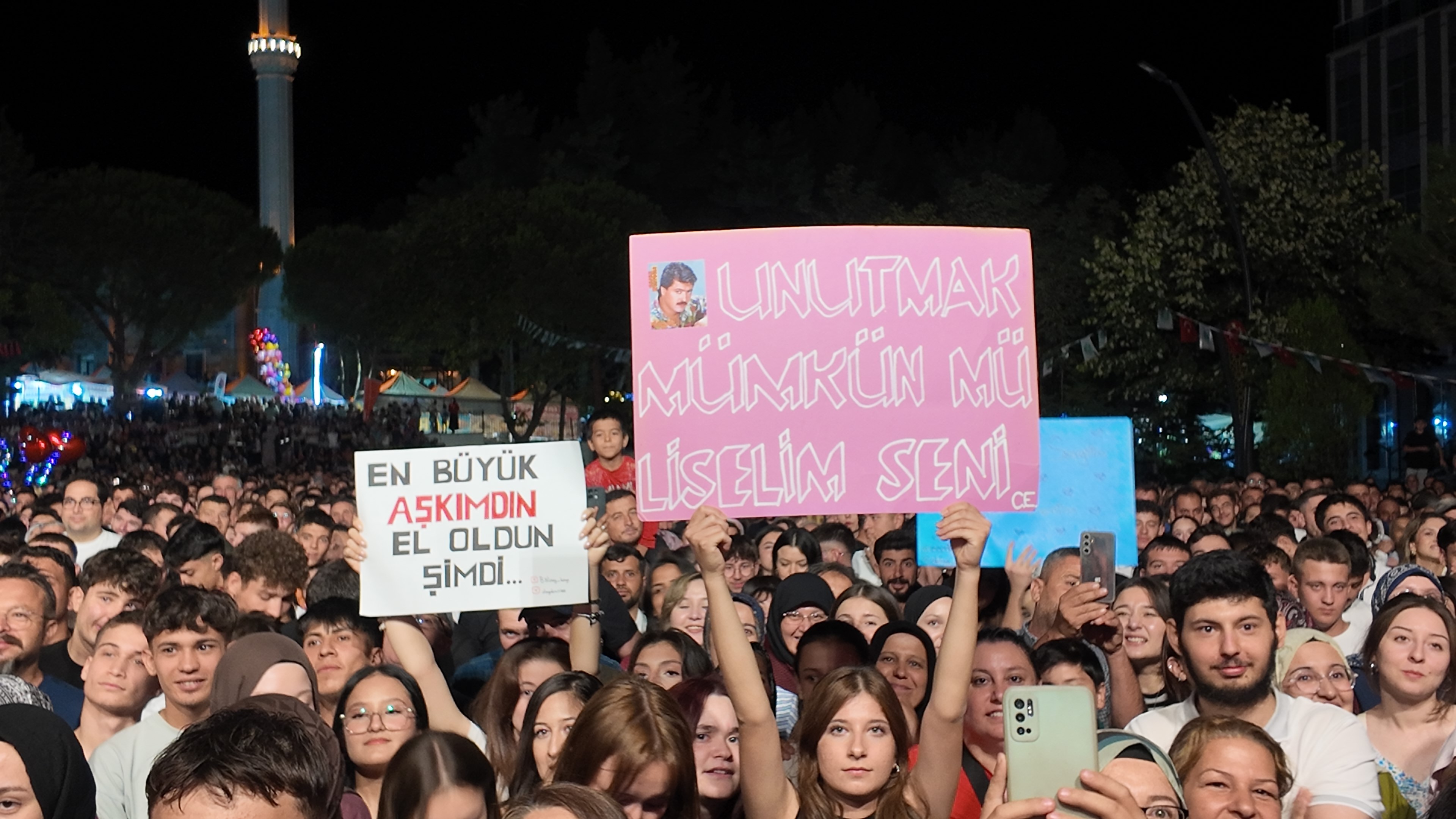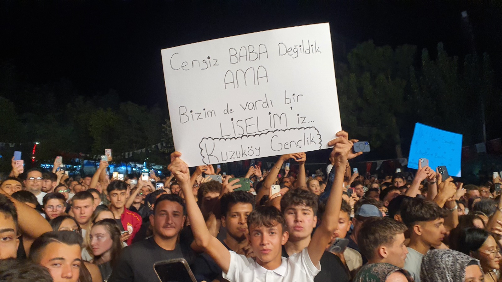 Meydanı dolduran binlerce kişi Cengiz Kurtoğlu'nun şarkılarına eşlik ederken, gençler konserde "Unutmak mümkün mü liselim seni" ve "En büyük aşkımdın el oldun şimdi" şarkı sözlerinin yazılı olduğu dövizler açtı.