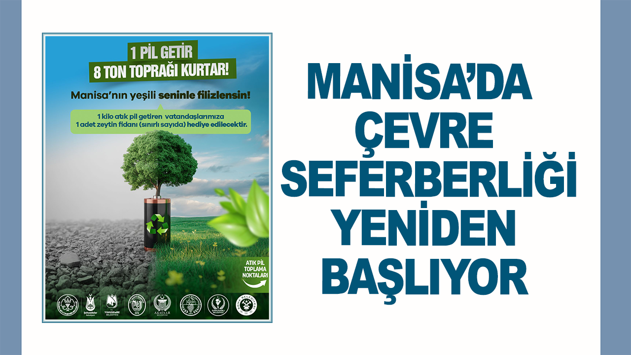 Kampanya kapsamında 1 kilogram atık pil teslim eden doğaseverlere, sınırlı sayıdaki zeytin fidanlarından 1 adet hediye edilecek. Bu sayede Manisa’nın daha temiz, daha sağlıklı ve daha yeşil bir geleceğe taşınması hedefleniyor.