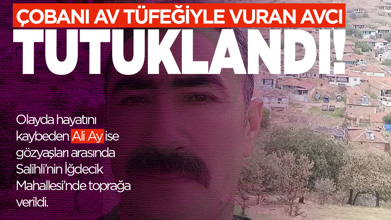Manisa’nın Salihli ilçesinin kırsal İğdecik Mahallesinde çobanlık yapan 45 yaşındaki Ali Ay’ın av tüfeği ile vurulması olayında avcı M.D., "Taksirle ölüme neden olma" suçundan tutuklanarak Salihli T Tipi Kapalı Cezaevi’ne gönderildi.