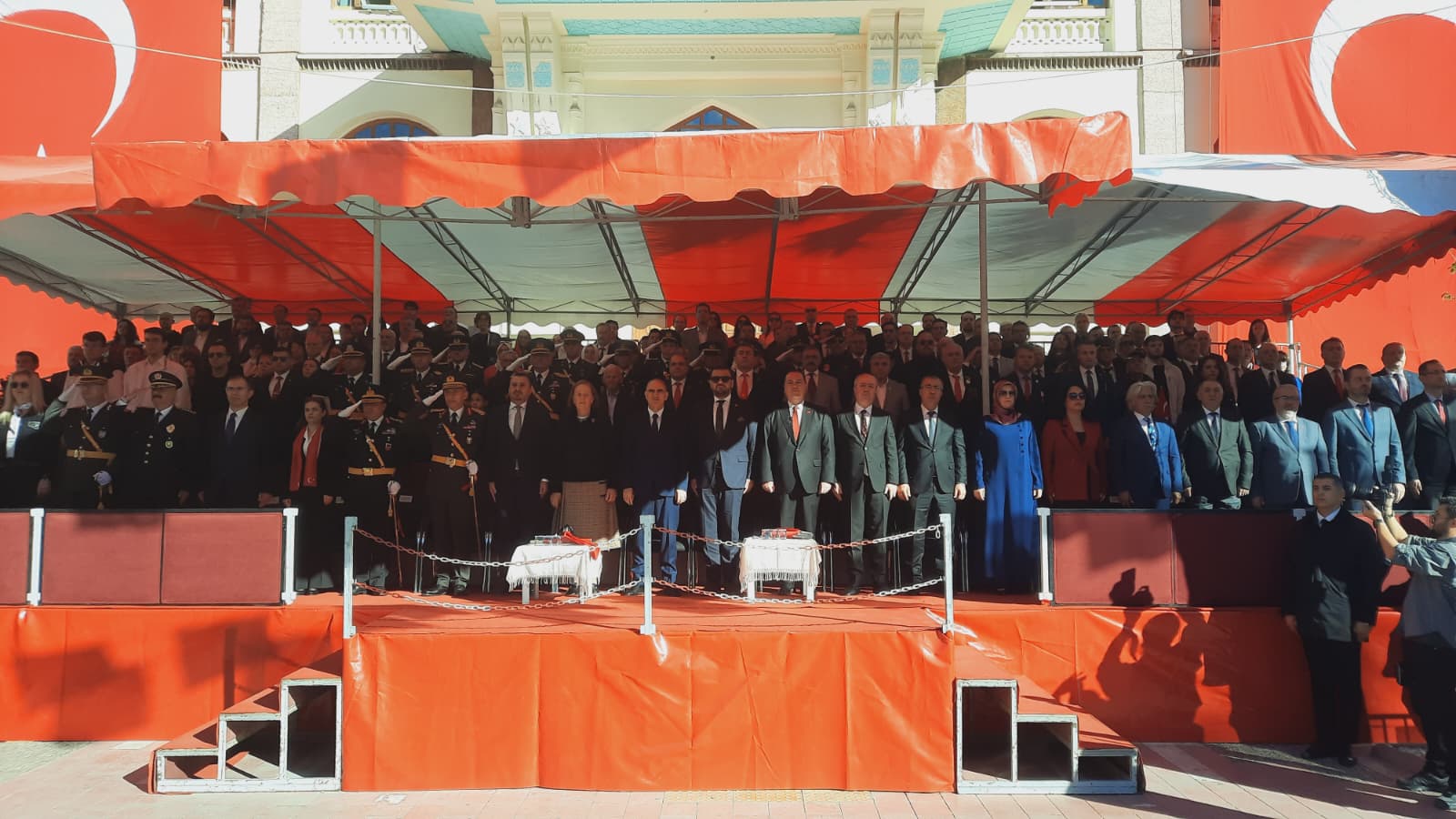 Tören, saygı duruşu ve İstiklal Marşı’nın okunmasıyla başladı. Günün anlam ve önemine ilişkin konuşmayı yapan Manisa Valisi Vahdettin Özkan, Cumhuriyet’in milletimizin yeniden doğuşunun sembolü olduğunu vurguladı.