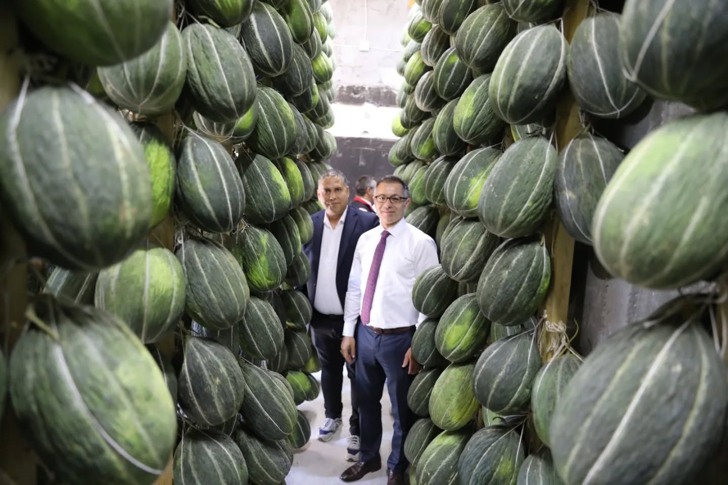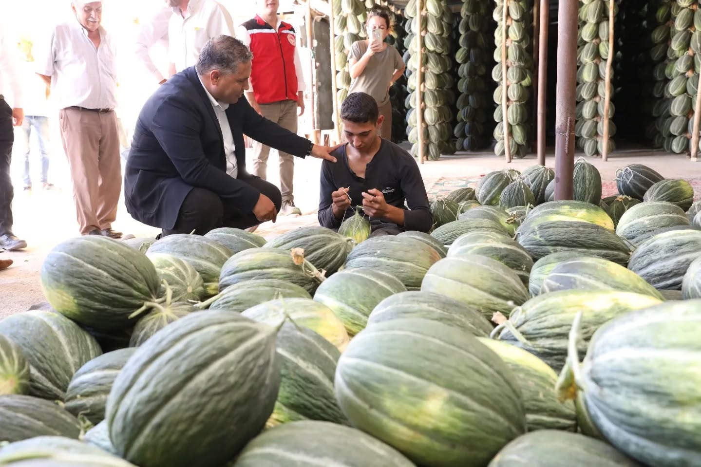 Ziyarette, bölgede yetiştirilen ünlü Davutbey cinsi kavunların depolara asılması işlemlerine eşlik eden İl Müdürü Karayılan, üreticiye bereketli bir sezon dileğinde bulundu.