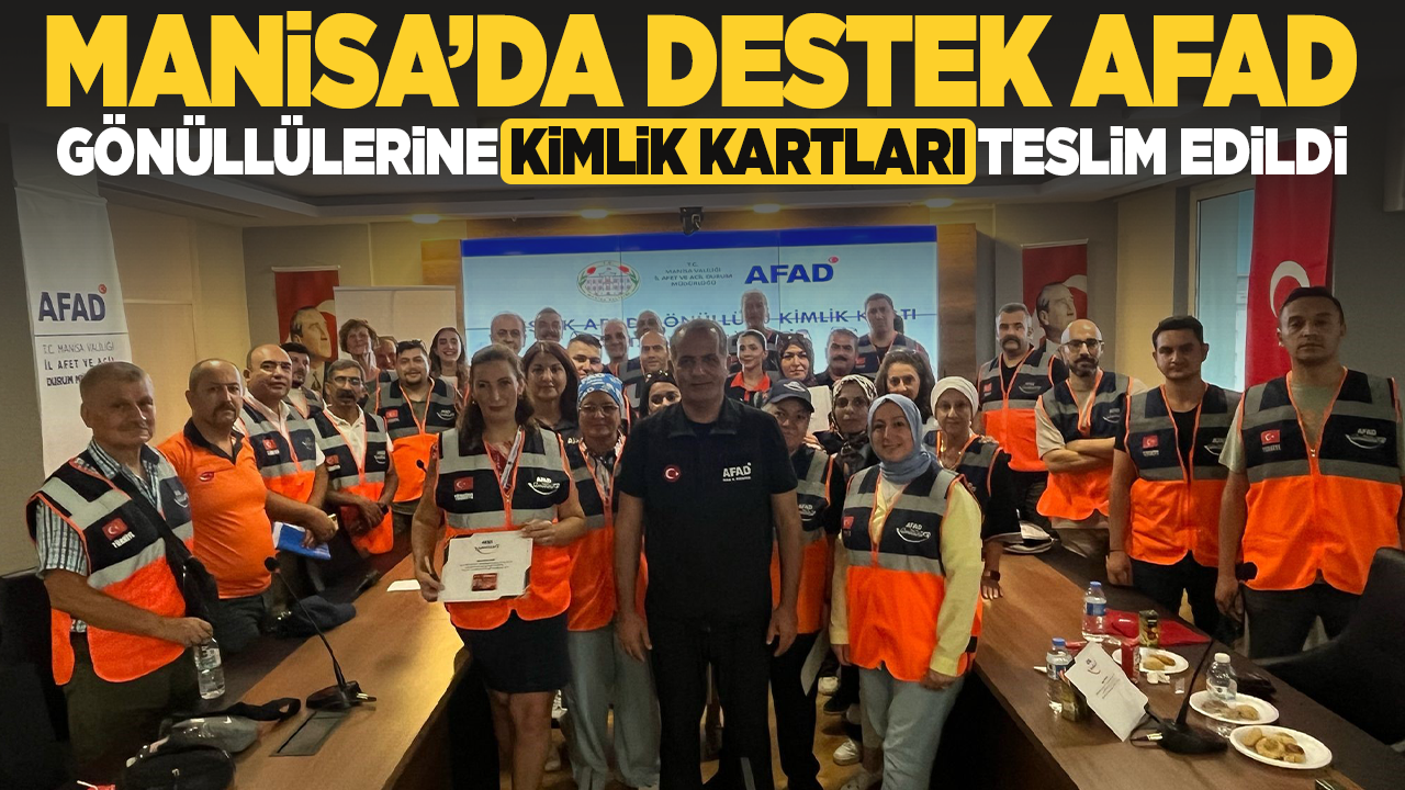 Manisa genelinde yaklaşık 900 kişilik gönüllü havuzunun parçası olan 50 Destek AFAD Gönüllüsü, kimlik kartlarını AFAD İl Müdürü Osman Pıhtılı’nın elinden aldı.