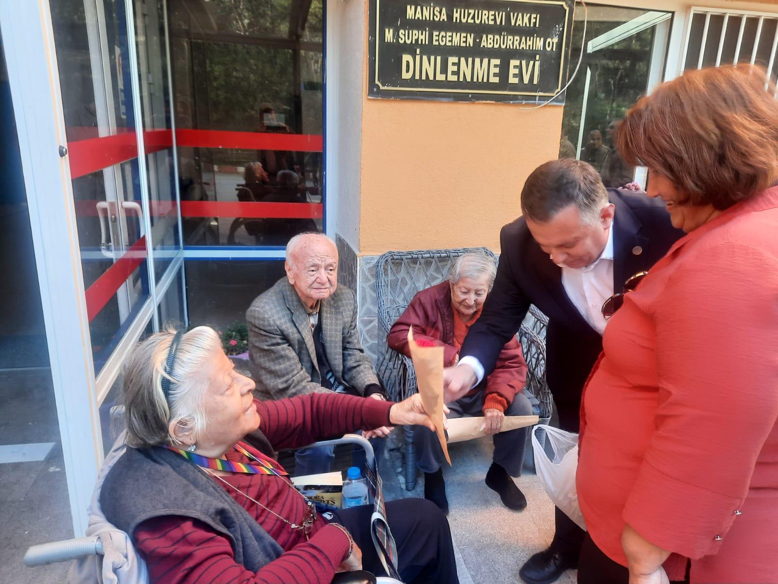 Emeklilik yaşamını Manisa Suphi Egemen ve Abdurrahim Ot’un öncülüğünde tamamlanan Özel Huzur Evinde sürdüren Belkıs Gördük’ü çiçeklerle ziyaret eden öğrencilerle öğretmenleri arasında duygu yüklü anların yaşanmasına neden oldu.