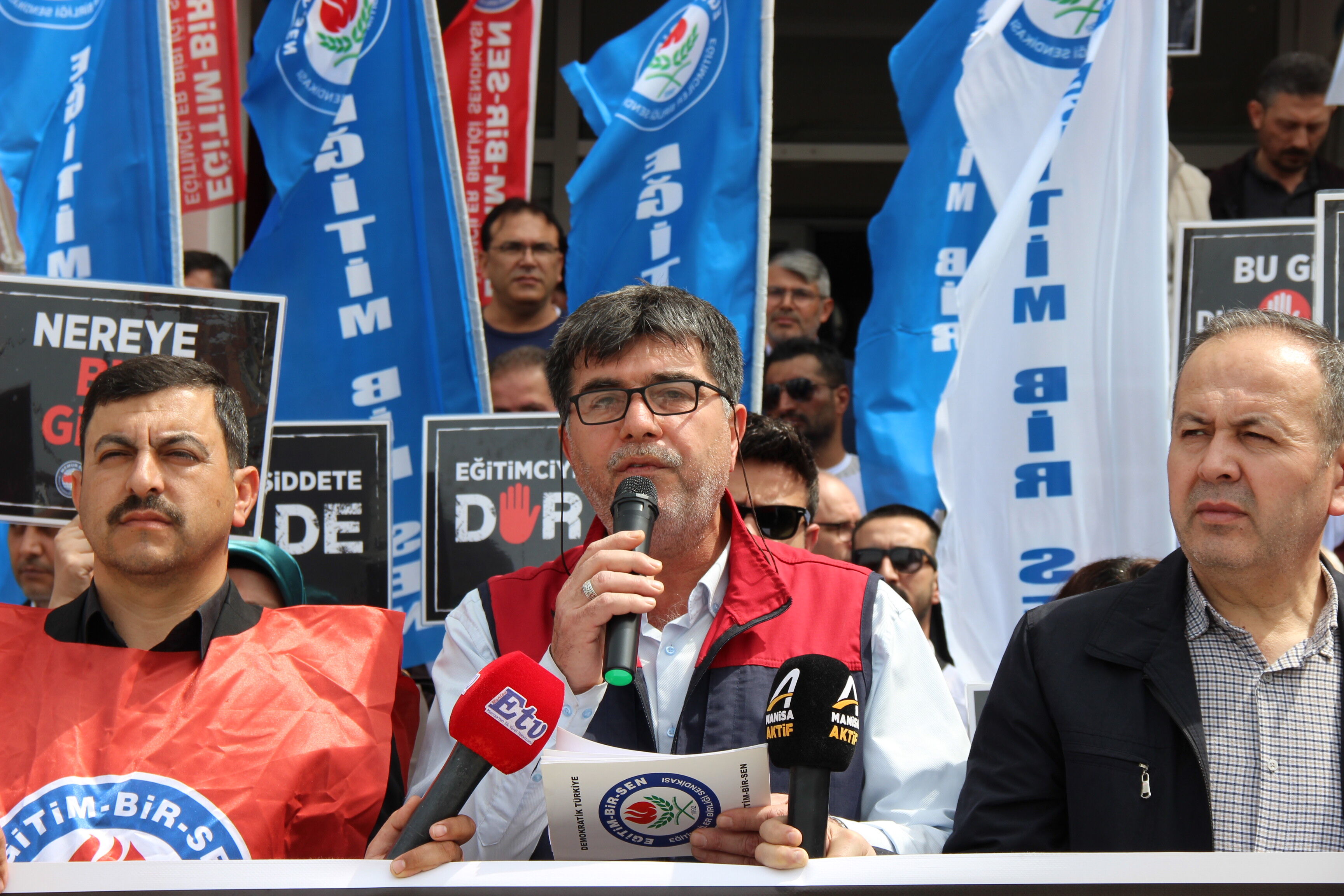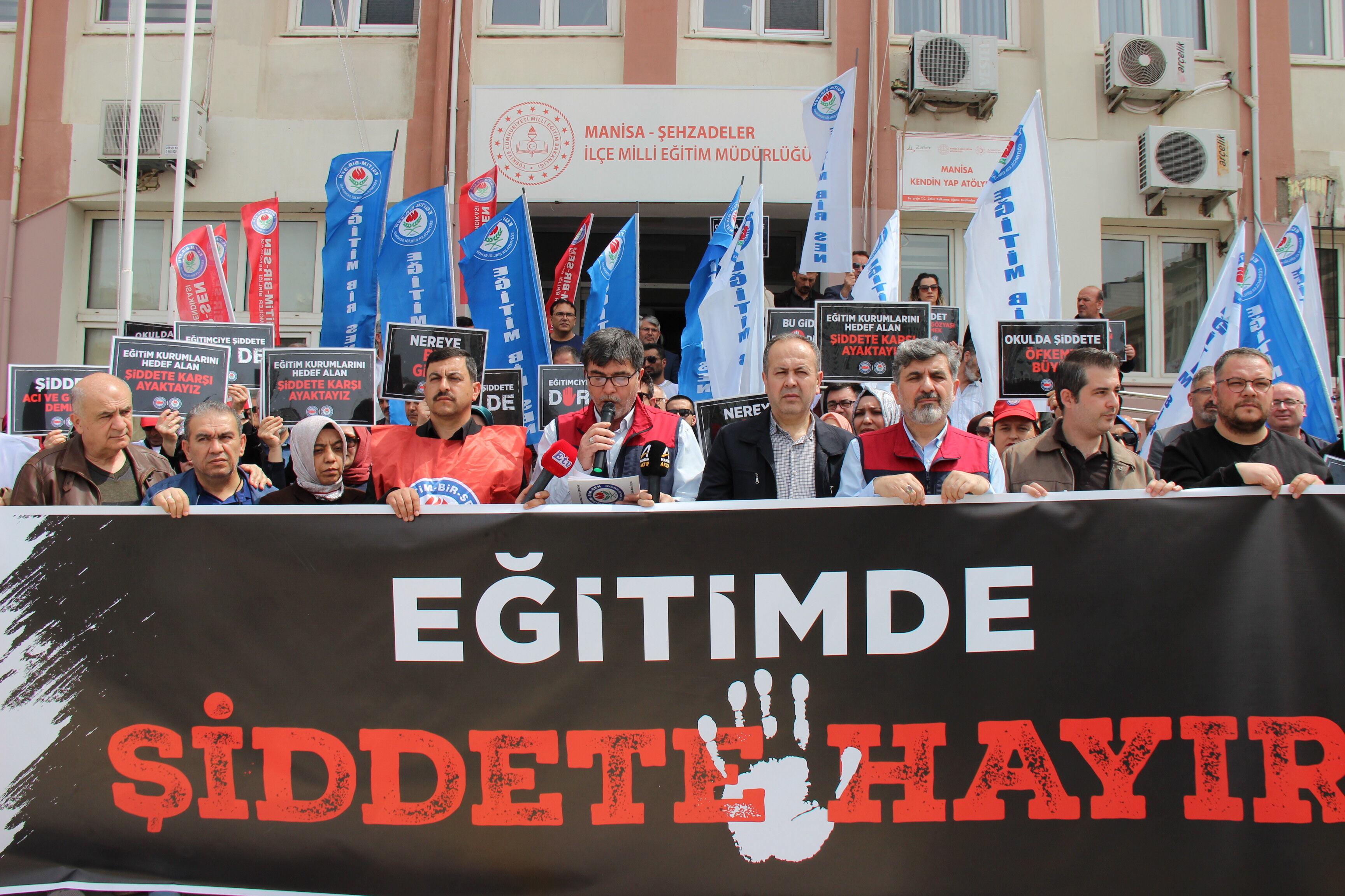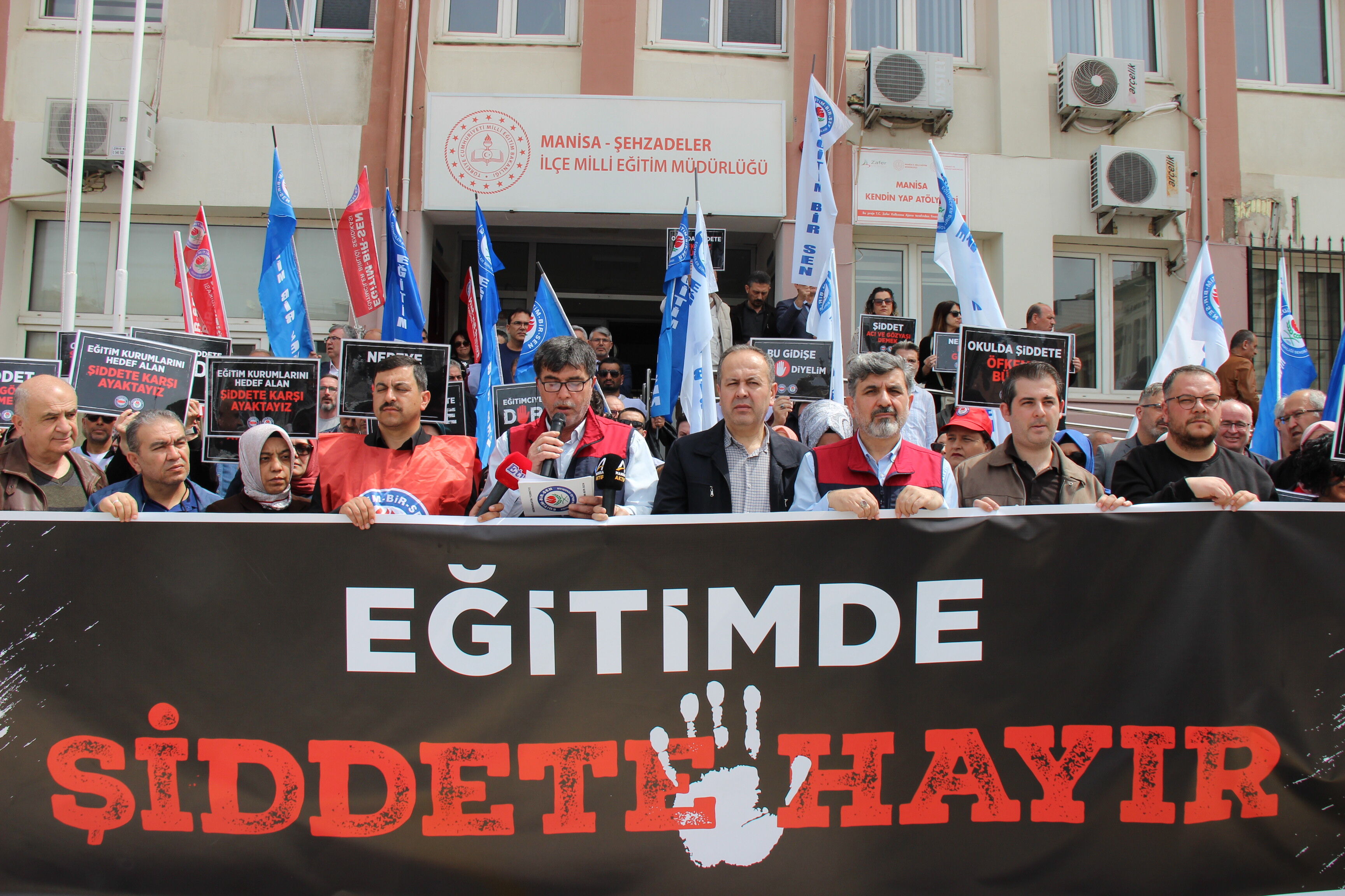 Eğitimciler, “Okulda ölmek istemiyoruz” sloganıyla tepkilerini dile getirirken, okullarda güvenliğin sağlanmasının ertelenemez bir zorunluluk olduğu ifade edildi.