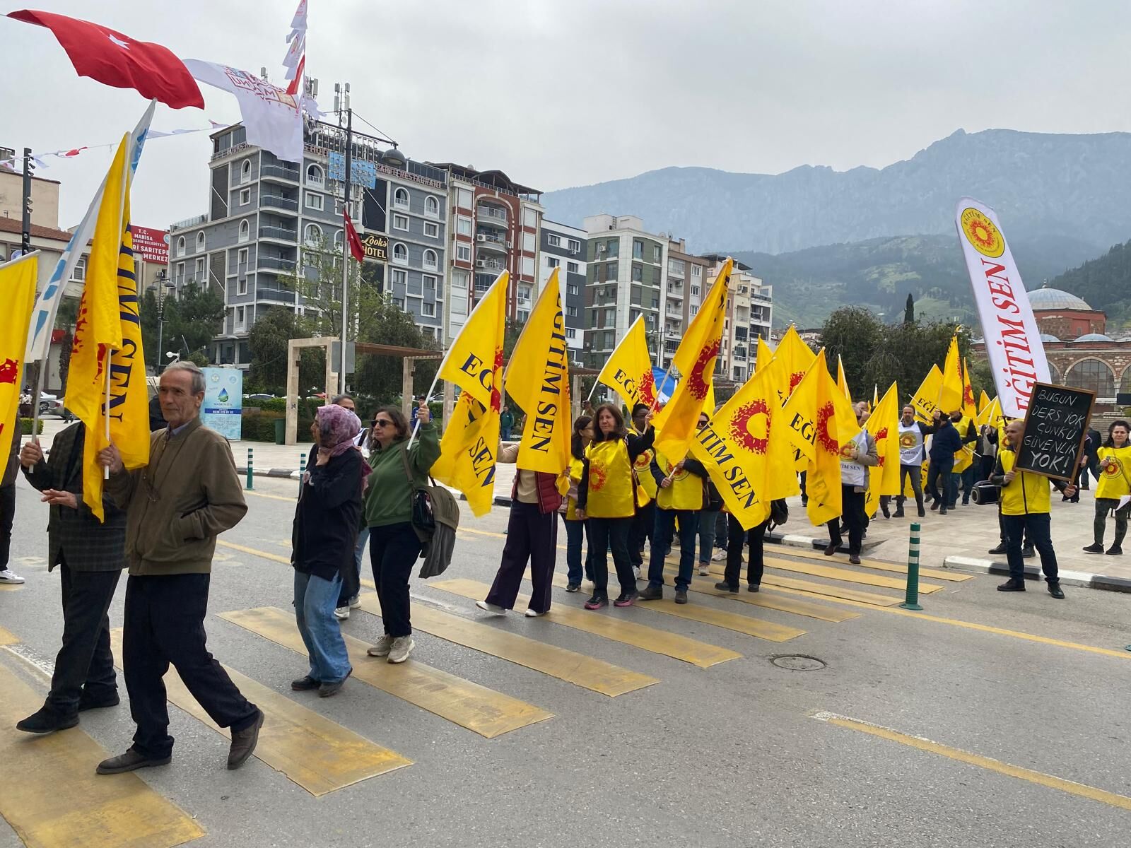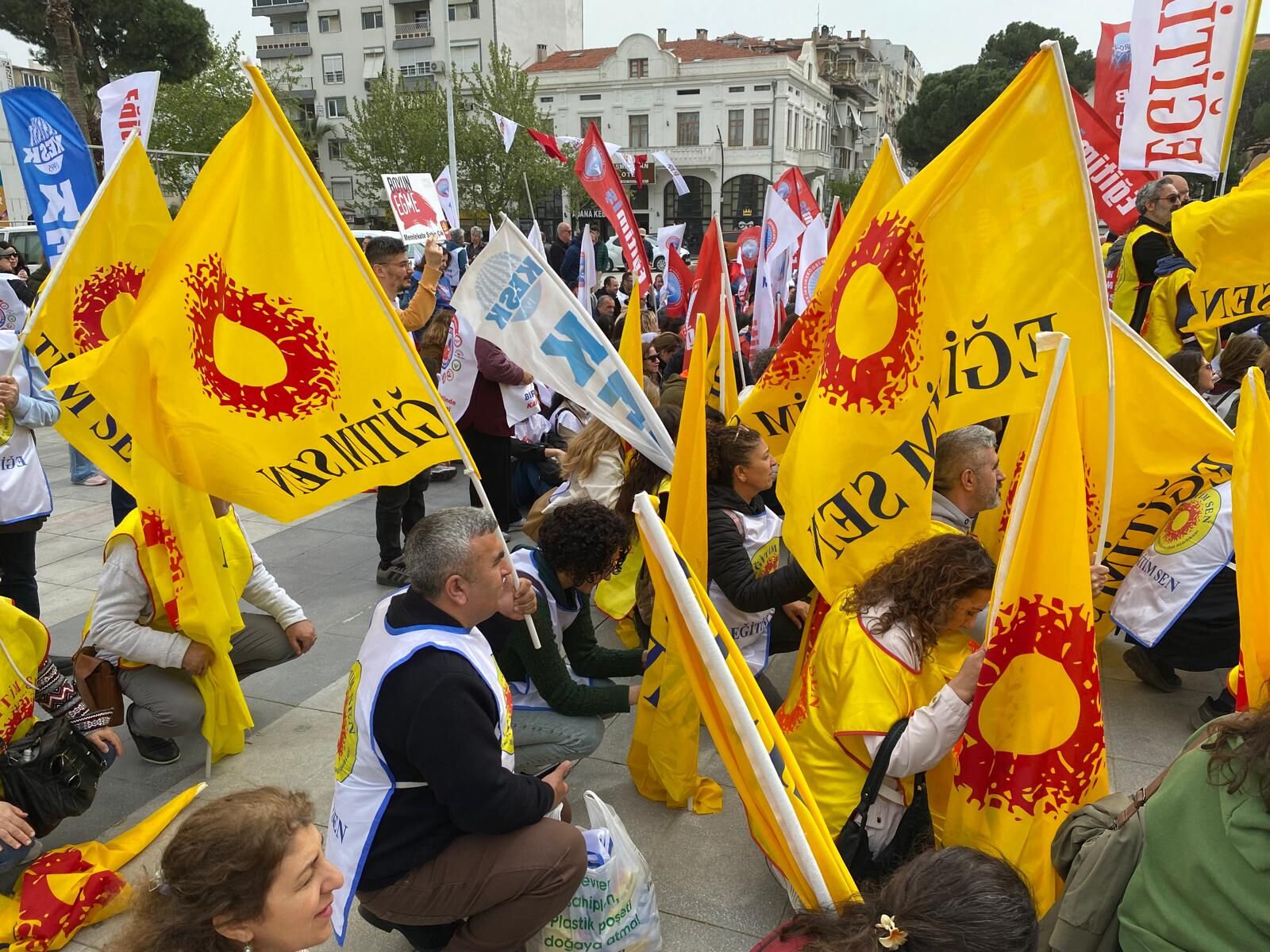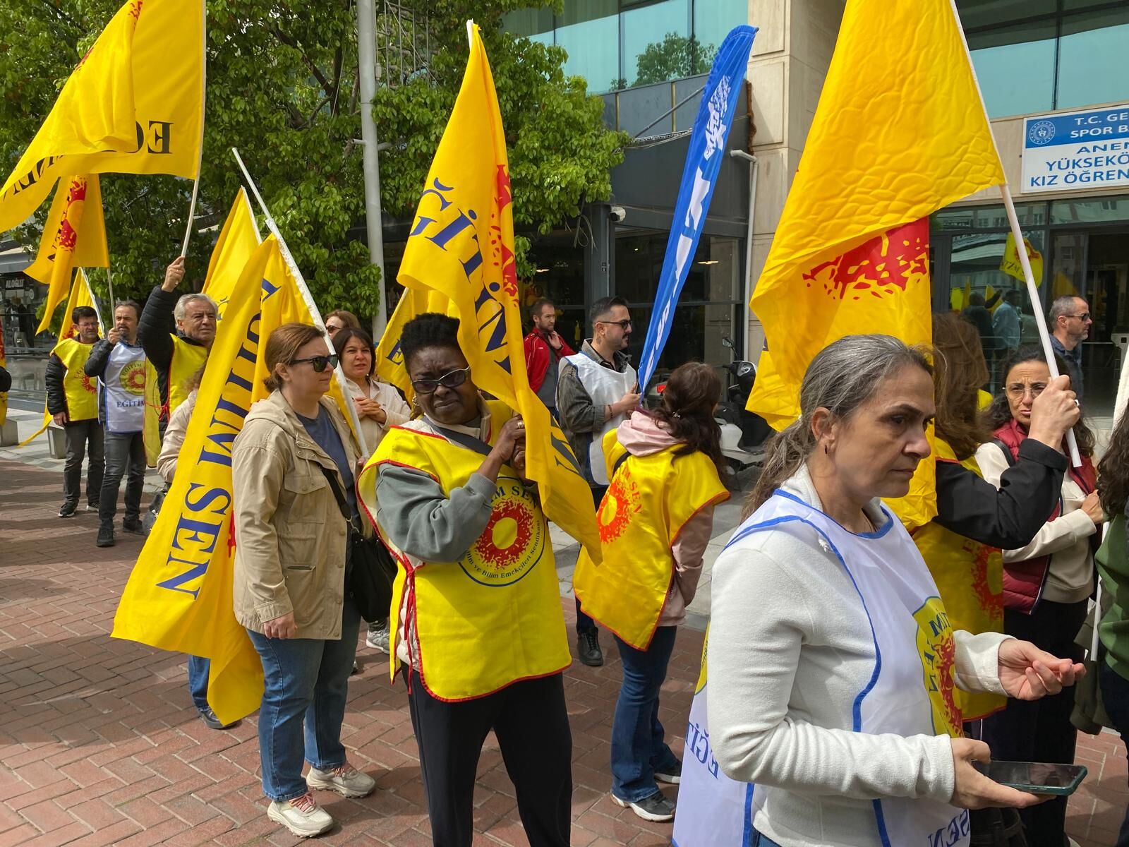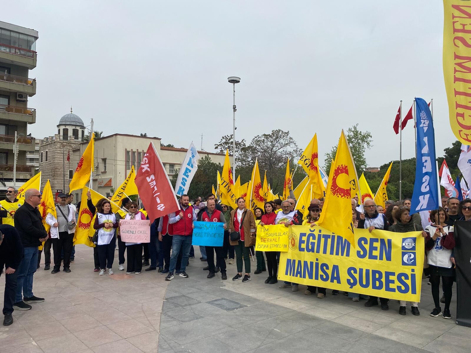 Eğitim-İş ve Eğitim-Sen üyeleri, protesto eylemlerinin ilk ayağında Şehzadeler İlçe Milli Eğitim Müdürlüğü binası önüne siyah çelenk bıraktı. Çelenk bırakma töreninin ardından Cumhuriyet Meydanı’nda toplanan kalabalık, Milli Eğitim Bakanı Yusuf Tekin’i istifaya davet ederek "Okullarda can güvenliği istiyoruz" sloganları attı.