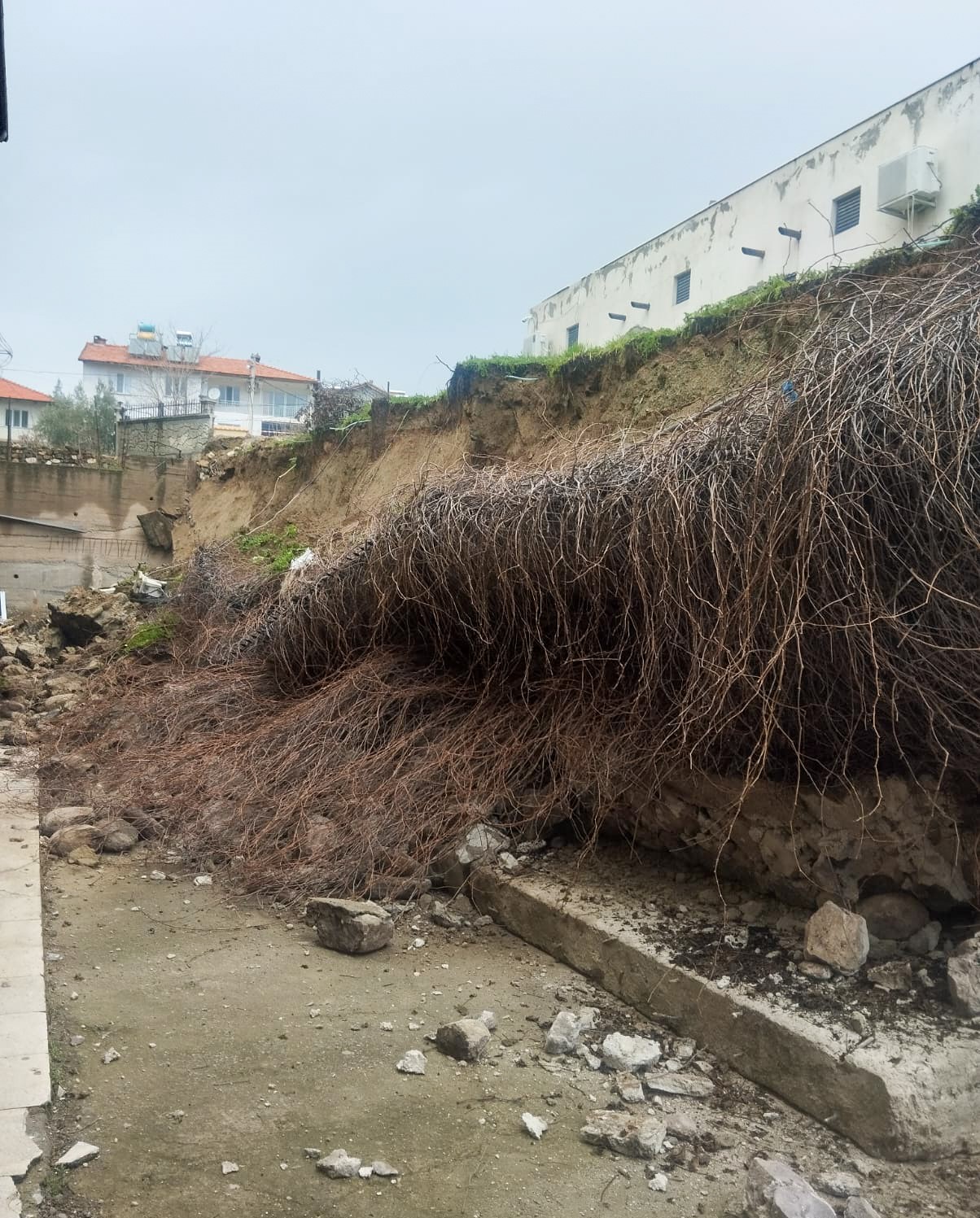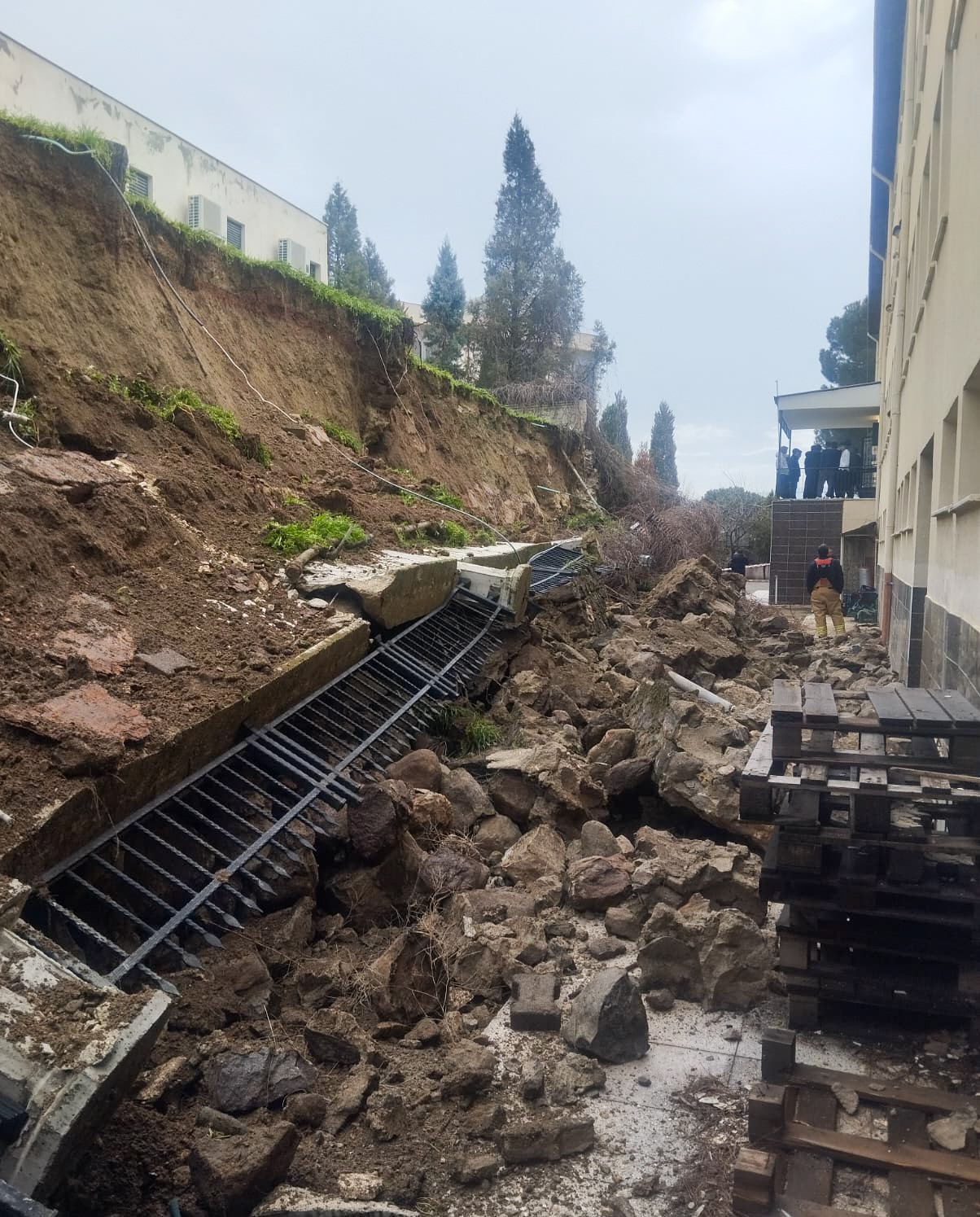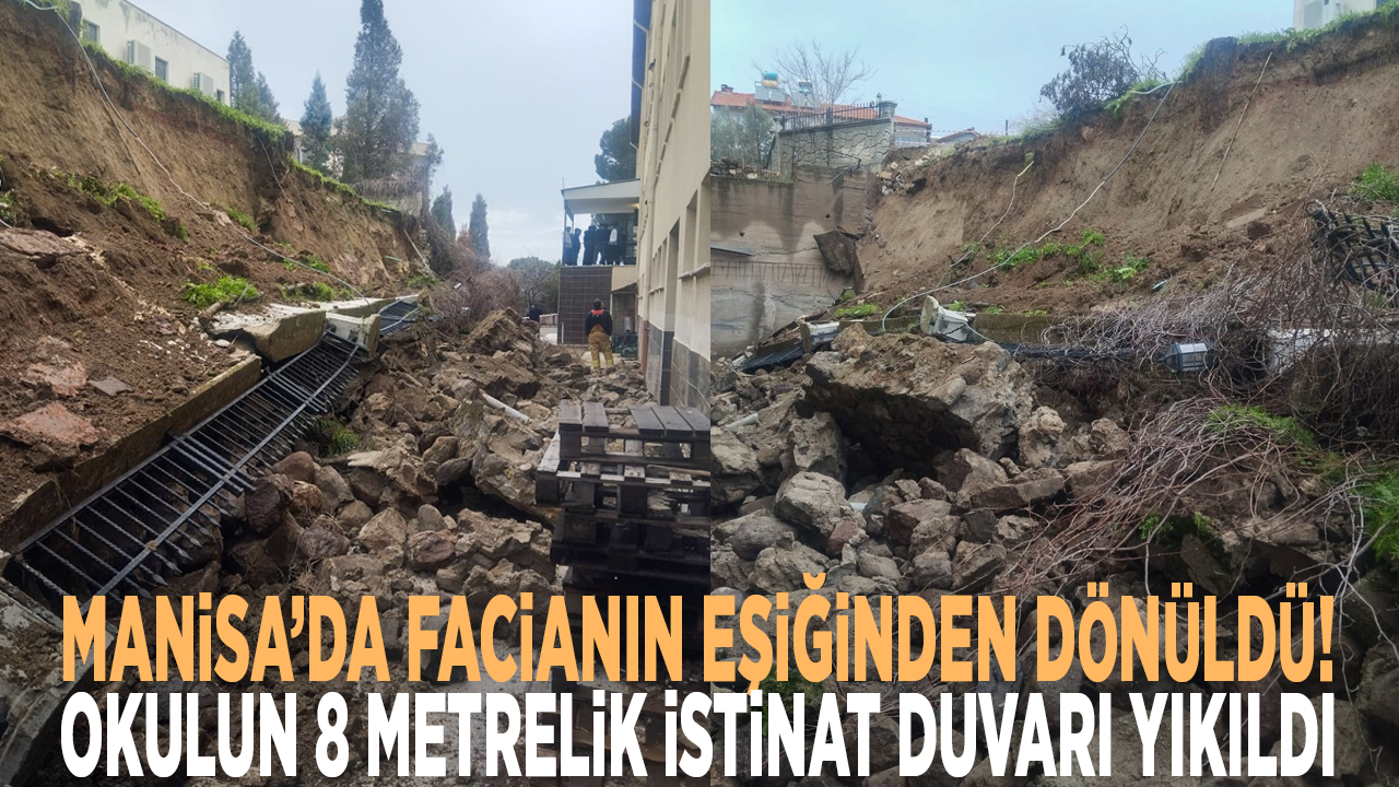 Edinilen bilgiye göre gece saatlerinden bu yana süren sağanak yağış sonrası toprağın ağırlığına dayanamayan okulun 8 metrelik istinat duvarı sabah 10.00 sıralarında okulun bahçe kısmına doğru yıkıldı.