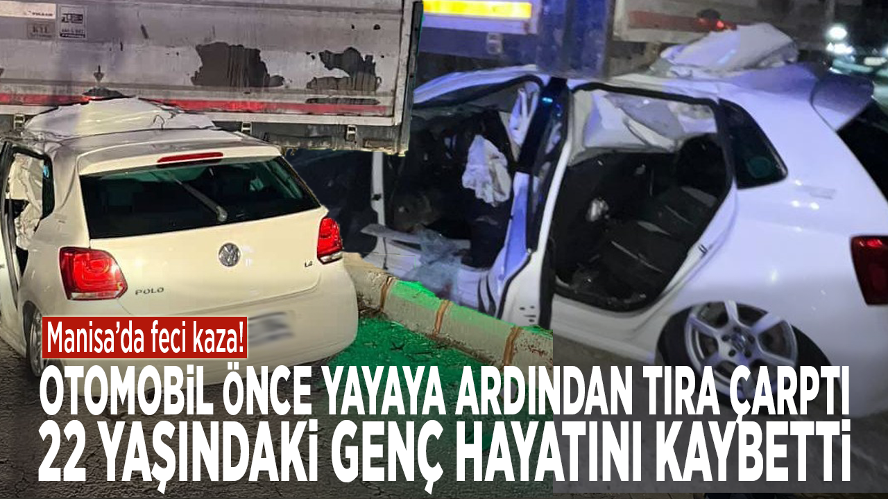 Kaza, saat 00.15 sıralarında Derbent Mahallesi Epic Petrol önü Ankara Asfaltı üzerinde meydana geldi. Samet T. (20) idaresindeki 43 ACS 884 plakalı otomobil, Turgutlu istikametine seyir halindeyken yola çıkan bir yayaya çarptı. Araç, çarpmanın ardından yolun sağında park halinde bulunan İsa S.’a (38) ait 35 BMT 052 plakalı tıra çarparak durabildi.