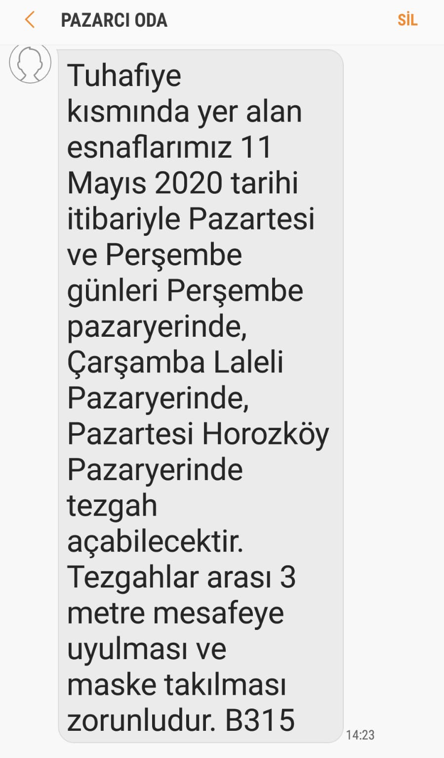 Pazarcılar Odası'ndan bilgilendirme mesajı