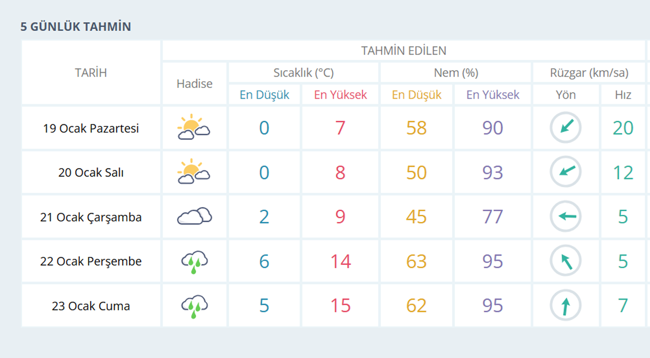 MANİSA İÇİN 5 GÜNLÜK HAVA TAHMİNİ