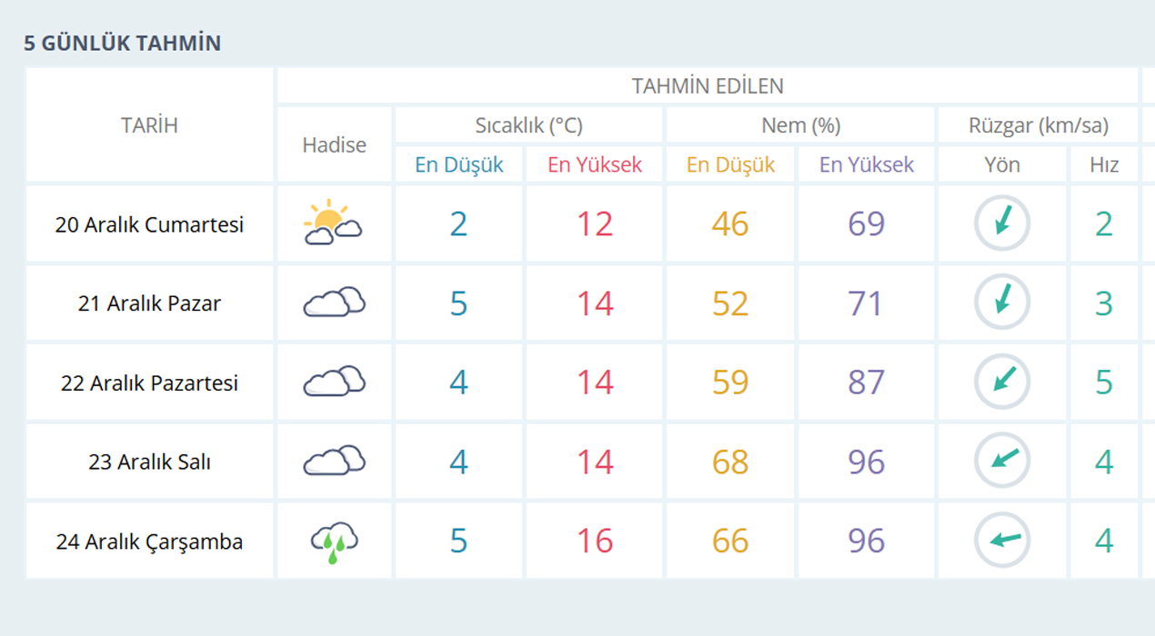 MANİSA İÇİN 5 GÜNLÜK HAVA TAHMİNİ