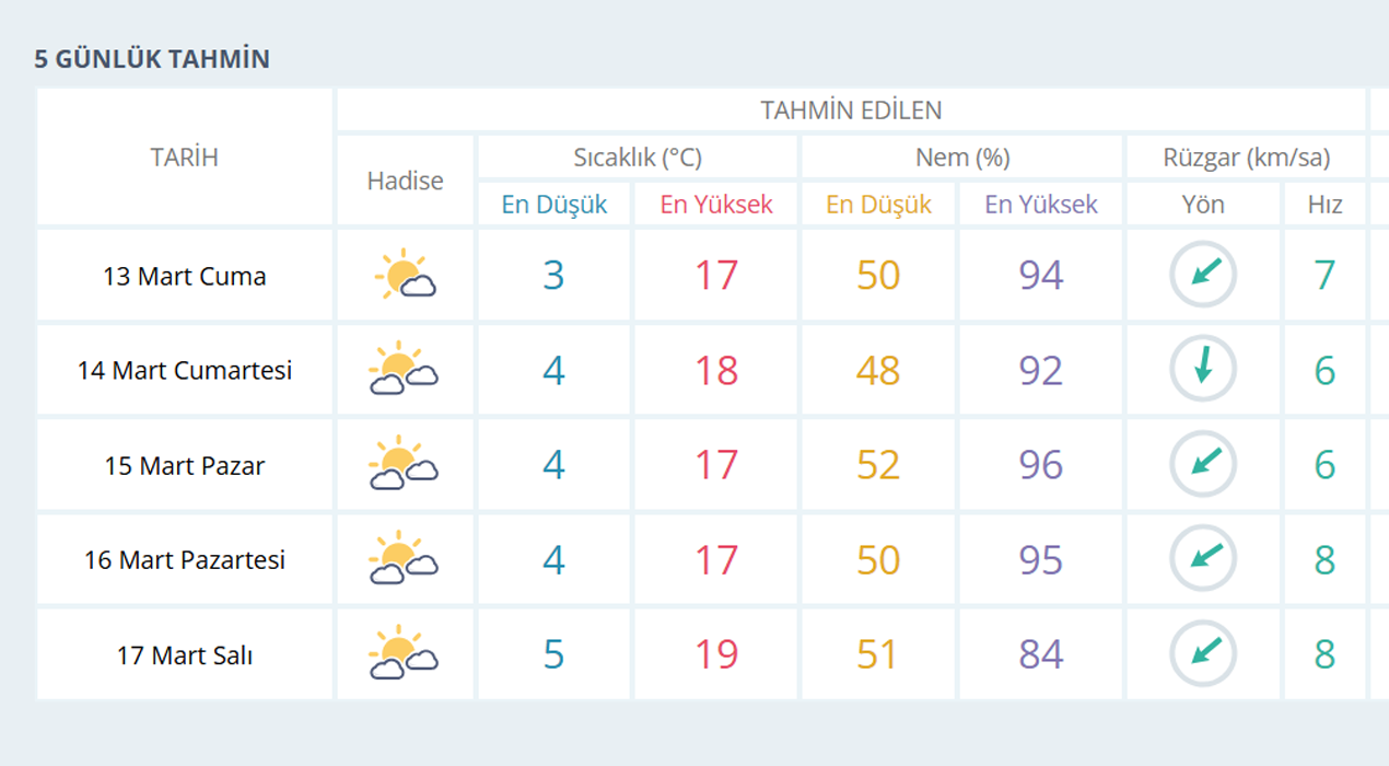 Önümüzdeki günlerde kent genelinde parçalı bulutlu havanın etkili olacağı, önümüzdeki 5 günlük süreçte ise yağışın görülmeyeceği bildirildi.