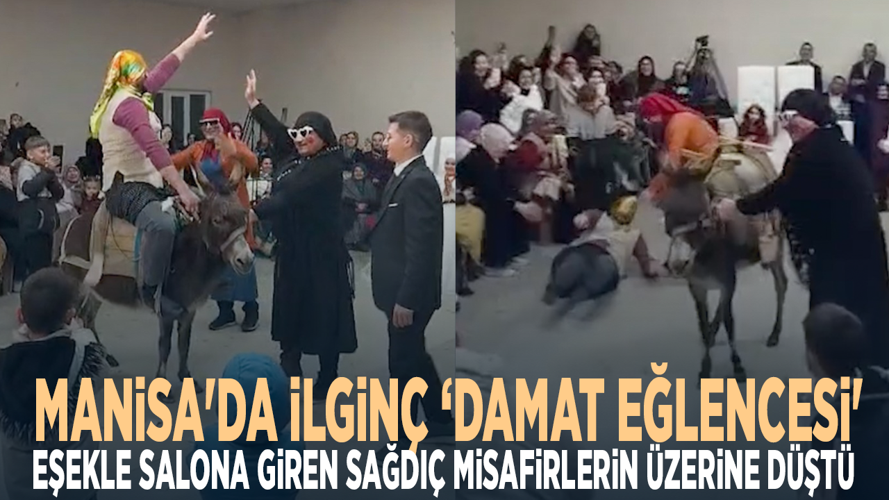 Renkli görüntülere sahne olan ‘damat eğlencesinde' misafirler kahkahaya boğulurken eşekten düşen Halil Çetin olayı yara almadan atlattı.