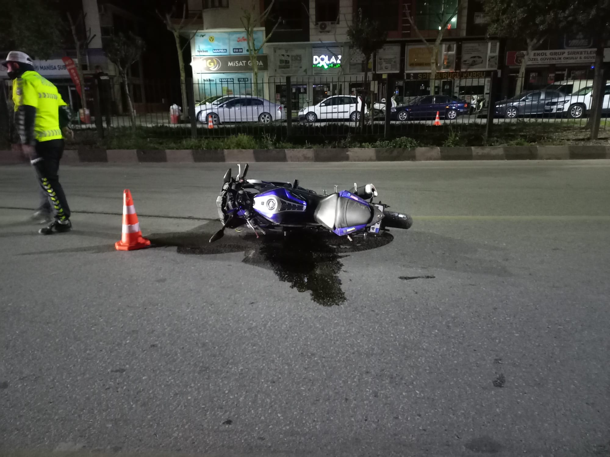 Sürücüsü henüz belirlenemeyen 45 ASN 686 plakalı motosiklet, seyir halindeyken kontrolden çıktı. Kontrolden çıkan motosiklet, orta refüjdeki demir korkuluklara çarptı.