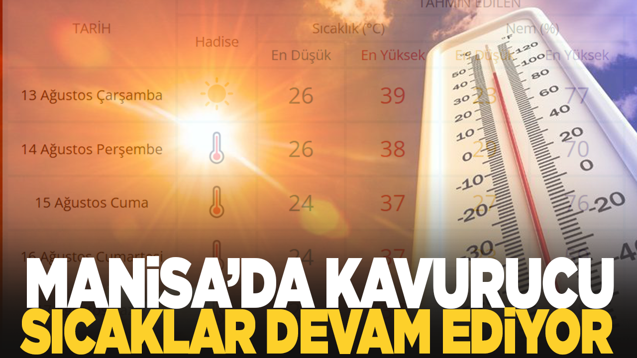 Perşembe ve cuma günleri de benzer şekilde yüksek sıcaklıkların etkili olması bekleniyor. 14 Ağustos Perşembe günü sıcaklık 38 derece, 15 Ağustos Cuma günü ise 37 derece olacak. Bu günlerde nem oranları %70’in üzerine çıkacak.