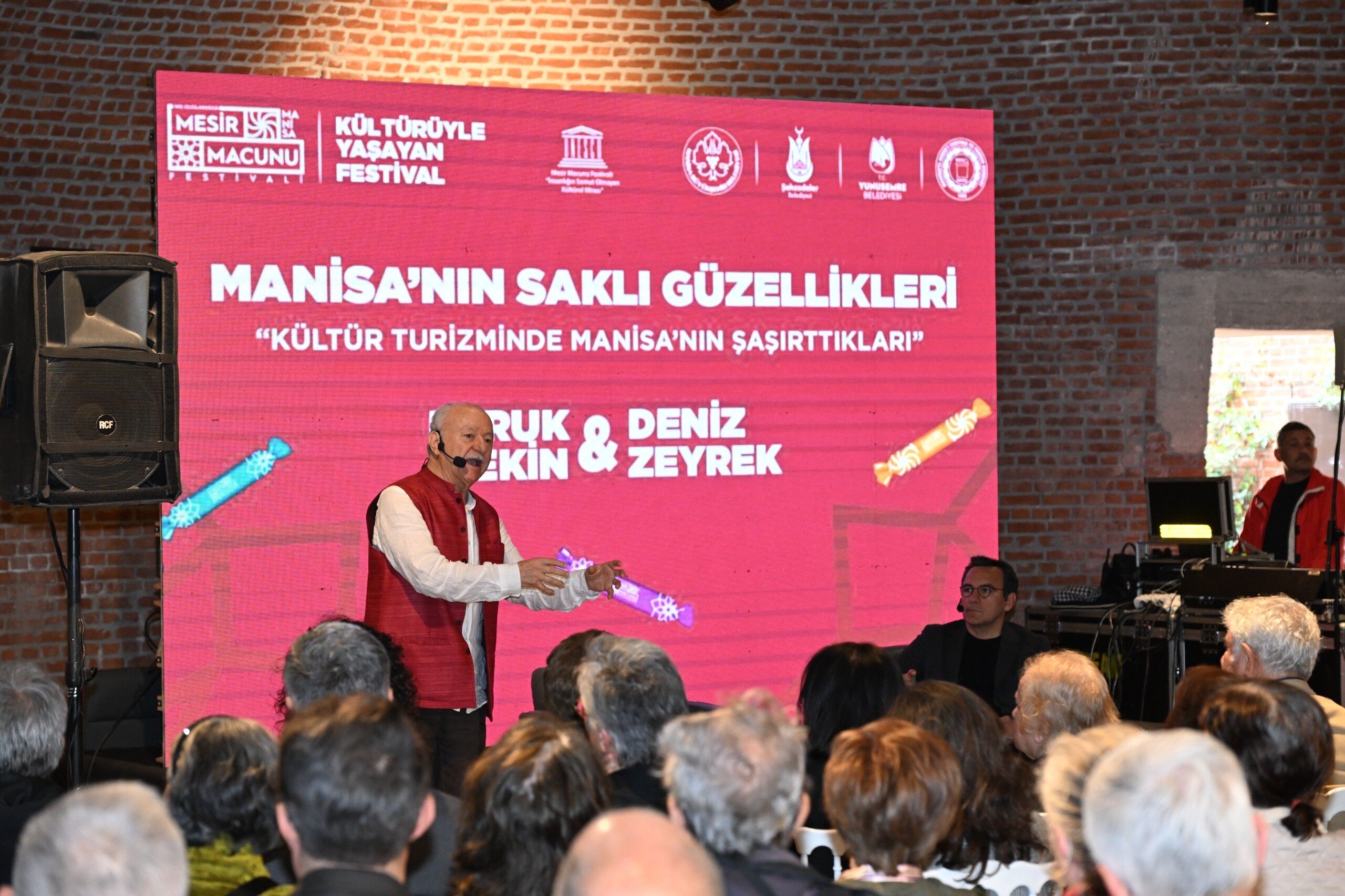 Manisa Kurtuluş Müzesi’nde düzenlenen "Kültür Turizminde Manisa’nın Şaşırttıkları" başlıklı söyleşinin moderatörlüğünü Deniz Zeyrek; konuşmacılığını ise kültür turizminin deneyimli ismi Faruk Pekin üstlendi. Söyleşiye, Manisa Büyükşehir Belediye Başkanı Besim Dutlulu, Yunusemre Belediye Başkanı Semih Balaban, Büyükşehir Belediyesi Genel Sekreteri Burak Deste, genel sekreter yardımcıları, sivil toplum kuruluşlarının temsilcileri ve çok sayıda vatandaş katıldı.