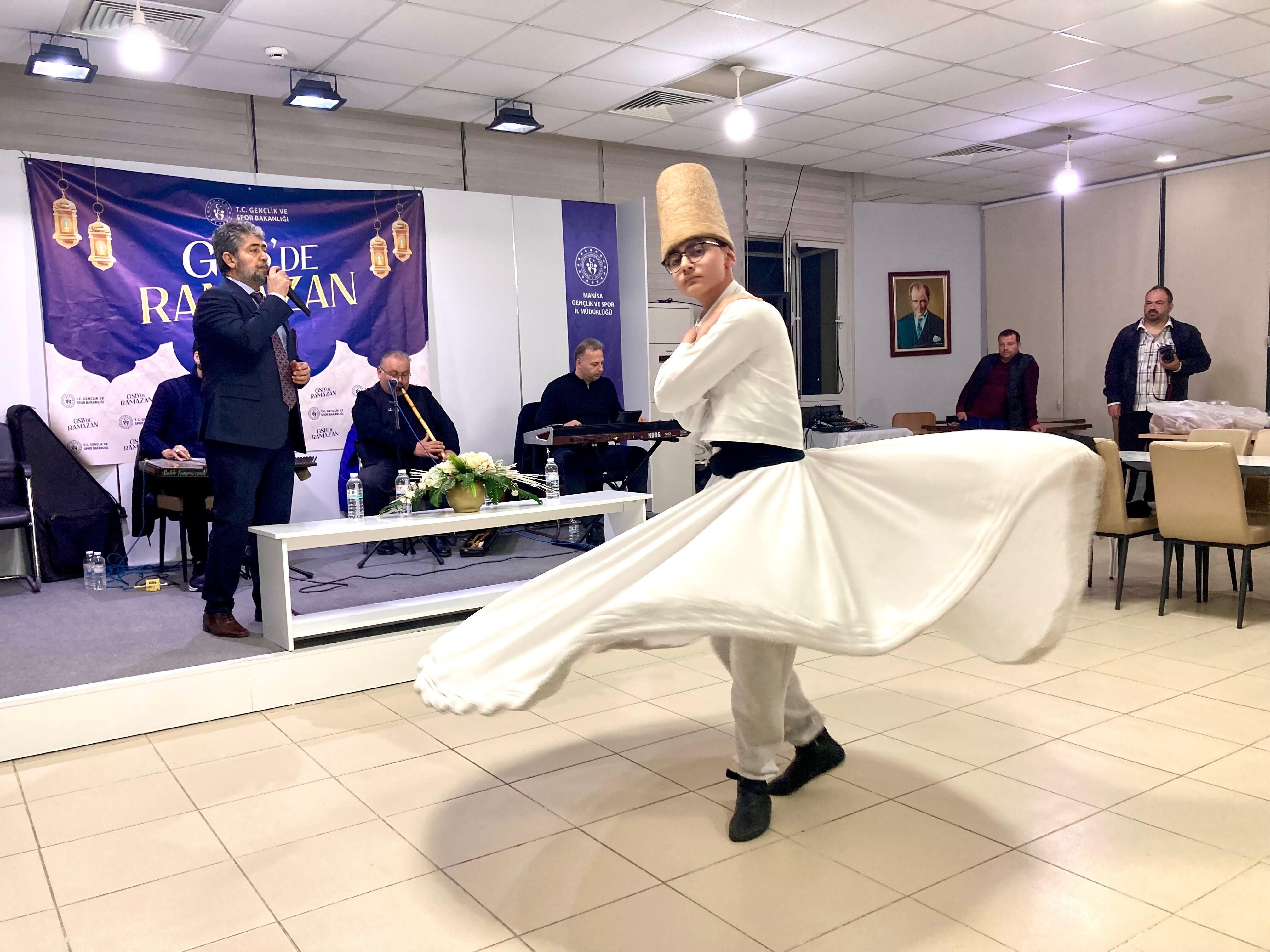 İlahilerle başlayan Neşet Ertaş ve birçok sanatçının şarkılarının seslendirildiği Ramazan etkinliğinde Semazen Ömer Salih Karaduman’ın gösterisi ve öğrenci Semanur Yarankuyu ‘Kabe’de hacılara Hu der Allah’ ilahisi dakikalarca ayakta alkışlandı.