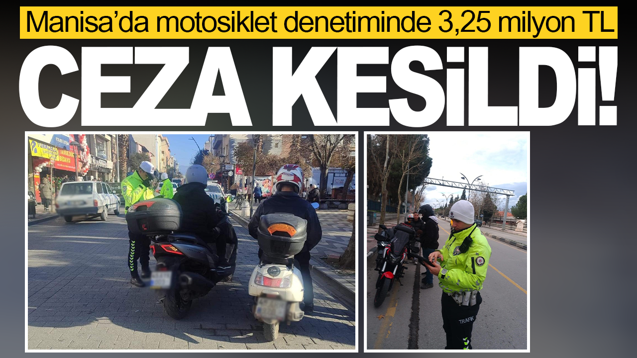 Manisa İl Emniyet Müdürlüğü Trafik Denetleme Şube Müdürlüğü ve ilçe trafik birimleri, 3-5 Ocak 2026 tarihleri arasında motosiklet ve motorlu bisiklet denetimi gerçekleştirdi. Günlük ortalama 32 ekip, 68 trafik personeli ile yapılan denetimlerde 2 bin 626 araç ve sürücüsü kontrol edildi. Kusurlu görülen 904 araç ve sürücüsüne 2918 sayılı Karayolları Trafik Kanunu kapsamında 3 milyon 251 bin 282 TL idari para cezası uygulandığı açıklandı. Denetimlerde ayrıca 42 aracın da trafikten men edildiği bildirildi.
