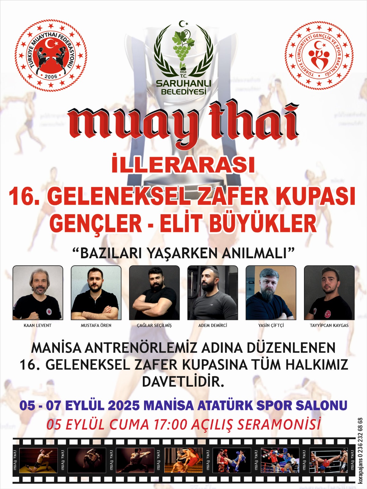 Türkiye Muaythai Federasyonu, Manisa Gençlik ve Spor İl Müdürlüğü ile Saruhanlı Belediyesinin iş birliğiyle gerçekleşecek turnuva, Manisa'da spor camiasını buluşturacak ve sporseverlere heyecan dolu müsabakalar sunacak.