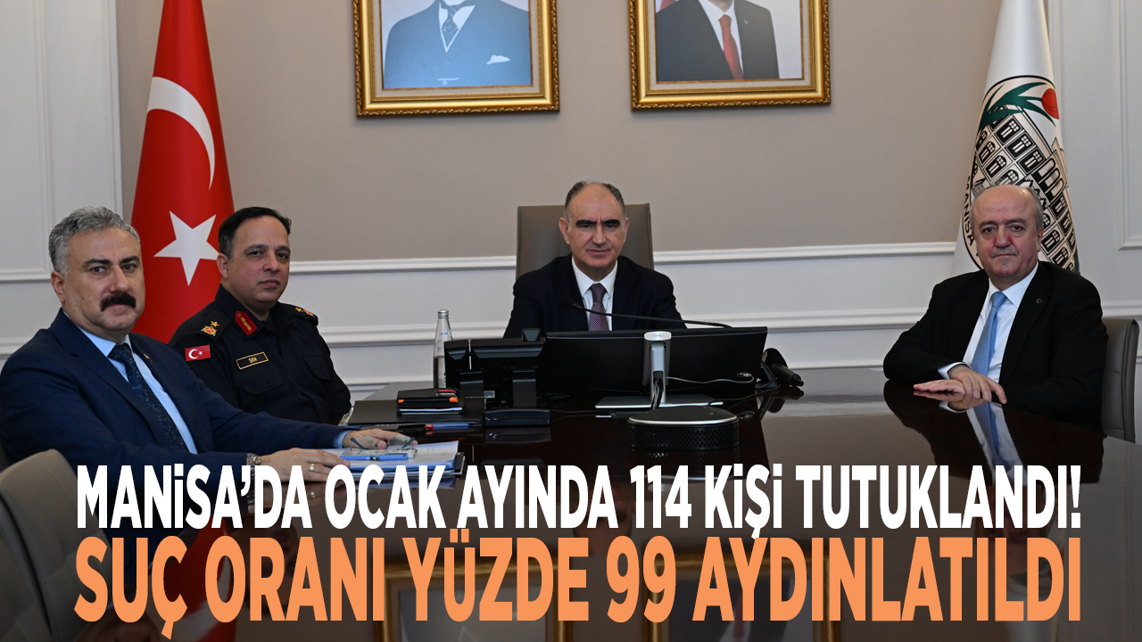 Manisa Valisi Vahdettin Özkan, Cumhuriyet Başsavcısı Kurtca Eker, İl Jandarma Komutanı Tuğgeneral İlhan Şen ve İl Emniyet Müdürü Fahri Aktaş’ın katılımıyla, il genelinde Ocak ayında yürütülen güvenlik ve asayiş çalışmalarını değerlendirdi.