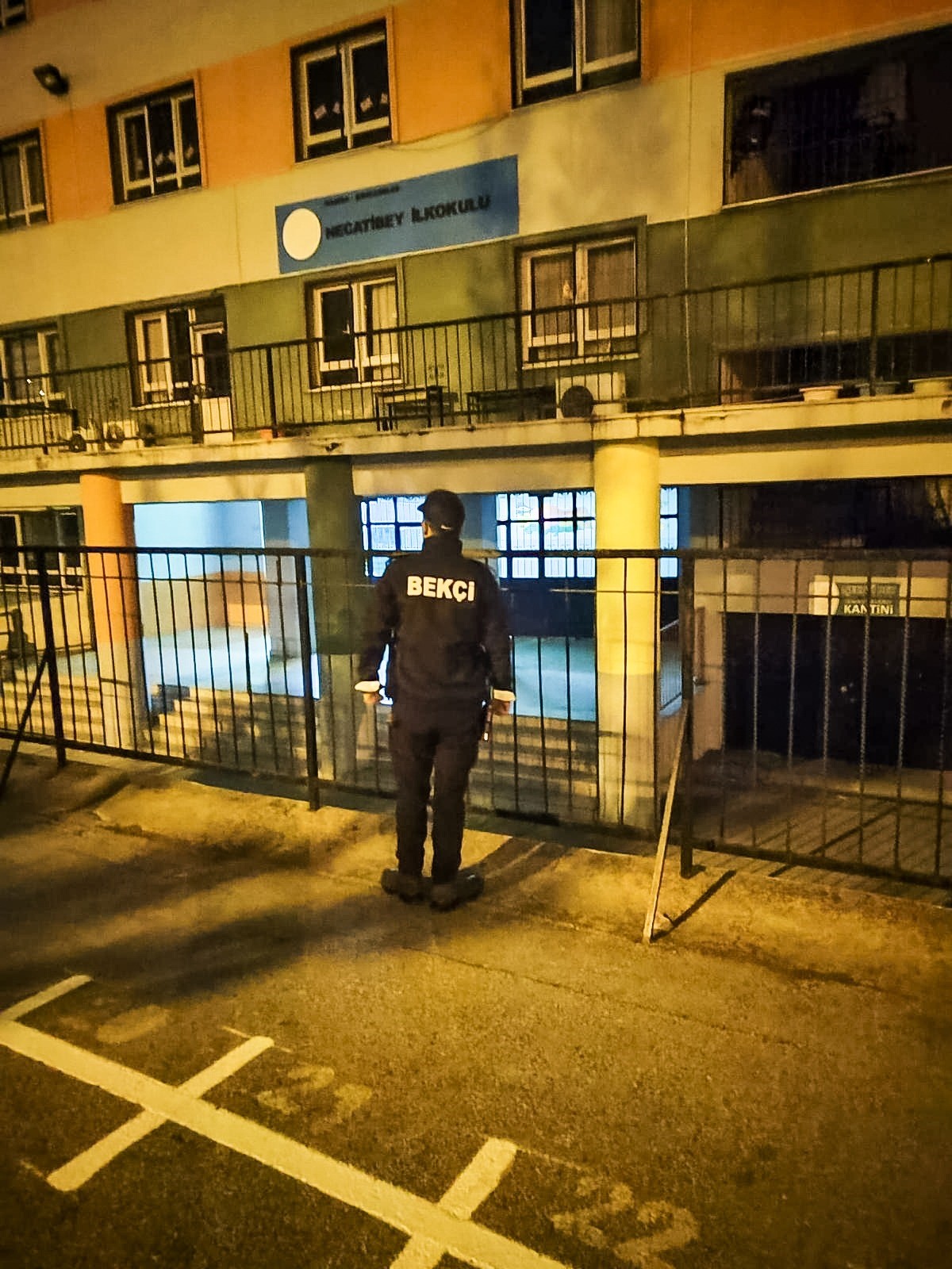 Manisa'da gündüz emniyet güçleri tarafından okul çevrelerinde alınan güvenlik tedbirlerini akşamları da gece bekçileri sağlıyor.