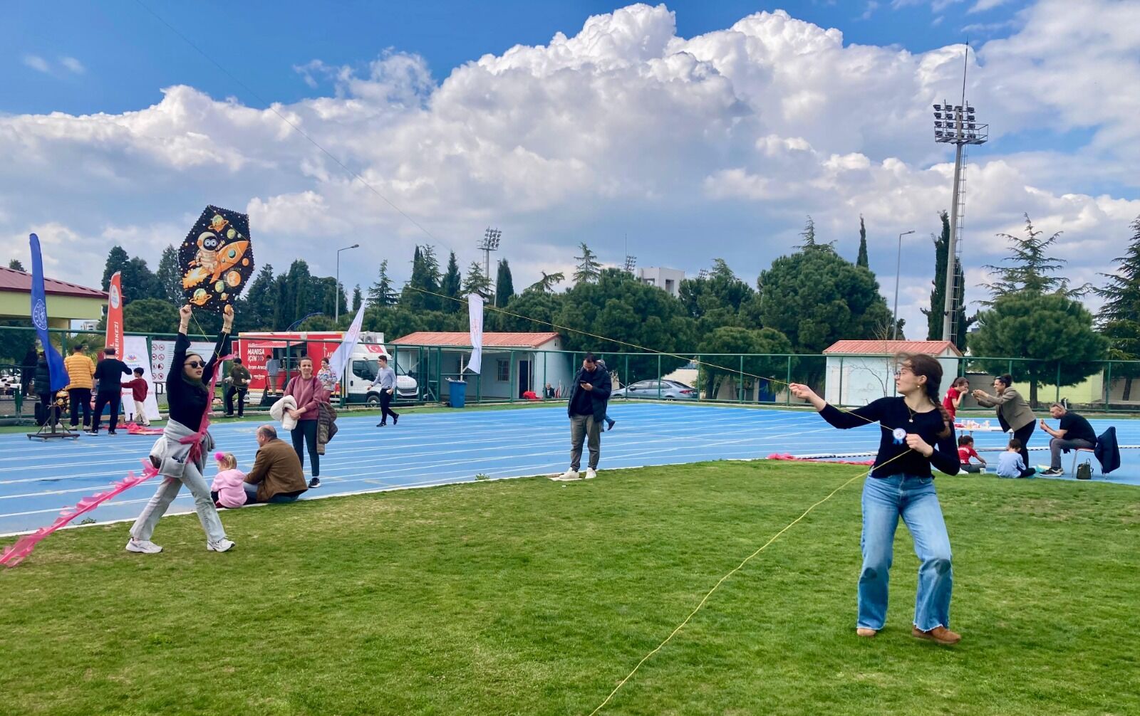Güneşli havaya rağmen rüzgarın etkili olmaması, uçurtmaların havalanmasını zorlaştırdı. Çocuklar ve aileleri, uçurtmaları gökyüzüne kaldırabilmek için uzun süre çaba sarf etti. Zaman zaman kısa süreli esintilerle bazı uçurtmalar havalanırken, katılımcılar büyük sevinç yaşadı.