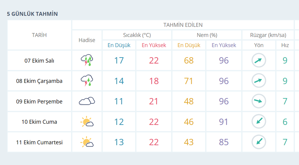 MANİSA İÇİN 5 GÜNLÜK HAVA TAHMİNİ