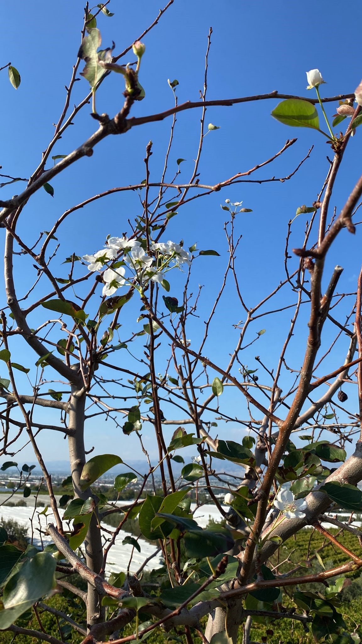 Emcelli Mahallesi'nde üzüm üreticiliği yapan Hüseyin Karcı, bağının kıyısına diktiği armut ağacının yeniden çiçek açtığını görünce hayrete düştü.