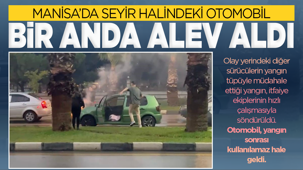 Yangın, İzmir Caddesi üzerinde Yunusemre Meydan Camii önünde meydana geldi. Edinilen bilgiye göre, Ö.Ş. idaresindeki Volkswagen marka otomobilin seyir halindeyken bir anda motor bölümünden alevler yükseldi. Otomobil sürücüsü Ö.Ş. ve yanında bulunan yolcu araçtan hızla inerek diğer sürücülerden yardım istedi. Olay yerindeki diğer sürücülerin yangın tüpüyle müdahale ettiği yangın, itfaiye ekiplerinin hızlı çalışmasıyla söndürüldü. Otomobil, yangın sonrası kullanılamaz hale geldi.