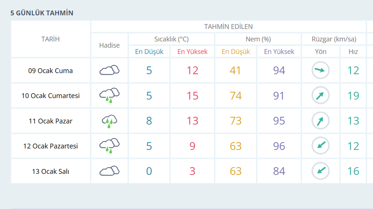 MANİSA İÇİN 5 GÜNLÜK HAVA TAHMİNİ