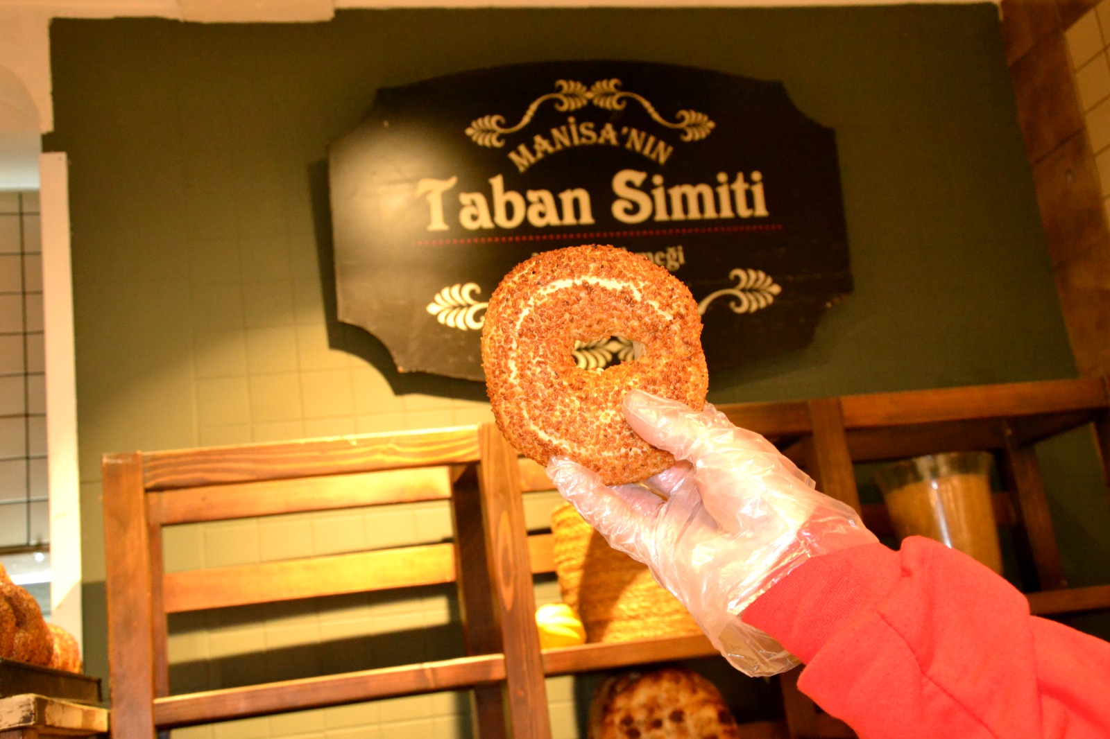 Manisa’ya özgü olan ve ismini yassı yapısından alan taban simidi, kentteki fırınlarda un, su, nohut mayası ve susam kullanılarak üretiliyor. Ürünü benzerlerinden ayıran en önemli özellik ise Manisa’da yetişen nohutlardan doğal yöntemlerle elde edilen maya ile hazırlanması. İçeriğinde tuz bulunmayan simidin, rahatsızlık ve şişkinlik yapmadığı belirtiliyor.