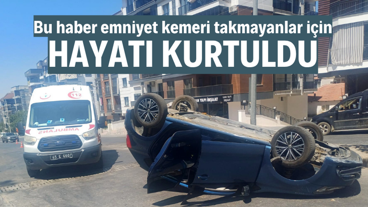 MANİSA (İHA) - Kaza, Aksoy Mahallesi Cephanelik mevkisinde meydana geldi. Edinilen bilgiye göre, Z.Ö. yönetimindeki 45 ASC 649 plakalı otomobil, sürücünün direksiyon hakimiyetini kaybetmesi sonucu aydınlatma direğine çarpıp takla attı. Çevredeki vatandaşların ihbarı üzerine olay yerinde sağlık ve polis ekibi sevk edildi. Yaşanan kazada, emniyet kemeri takılı olan sürücü Z.Ö, ters dönen araçtan burnu bile kanamadan çıktı.