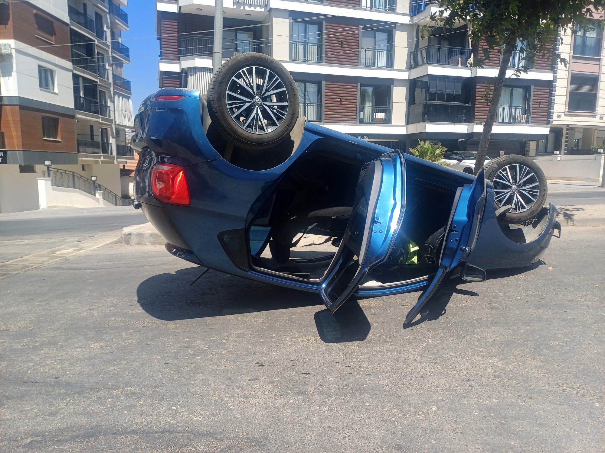 Takla atan otomobil çekici vasıtasıyla kaldırılırken, kaza sonrası otomobil ve aydınlatma direğinde hasar oluştu.